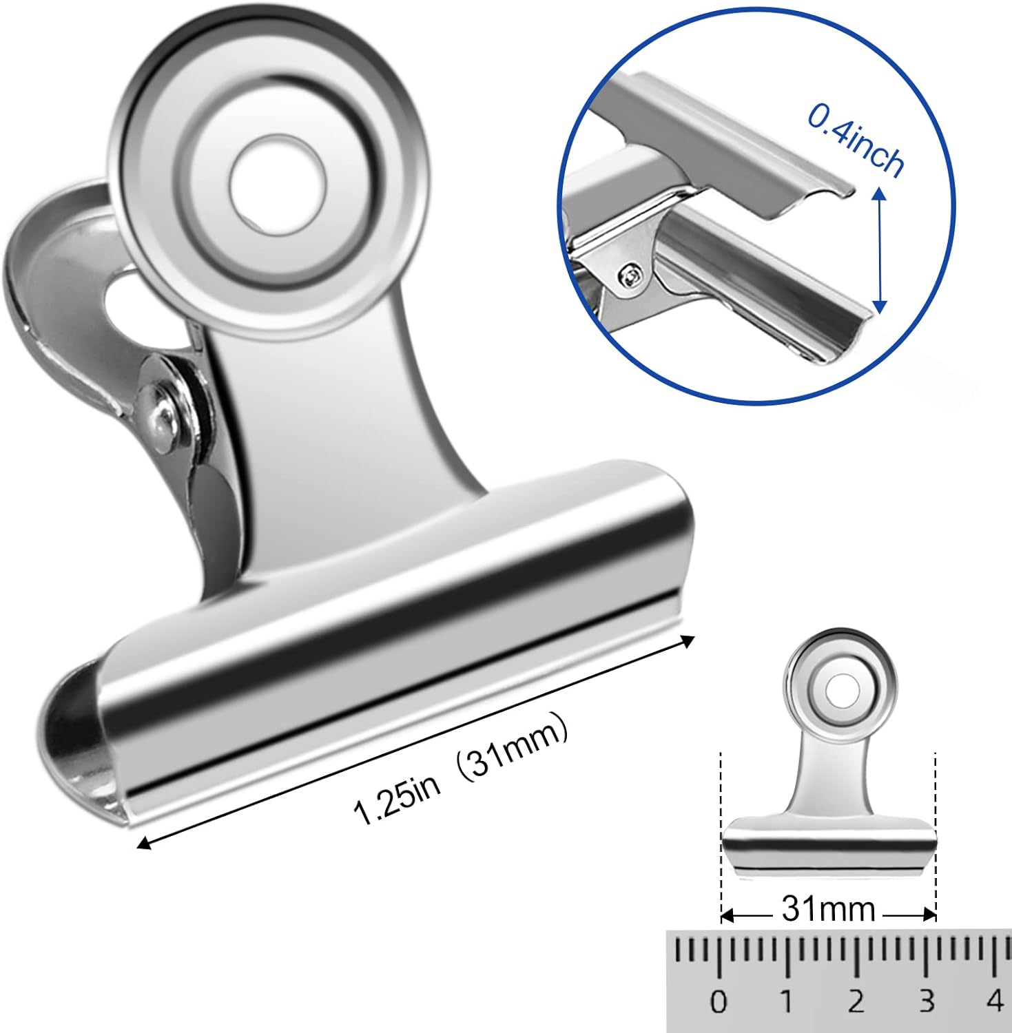 - Size: Each small hinge clip is 1.22 inch wide. Come with 30pcs silver bull clips, compact and portable, easy operation and quick clamping