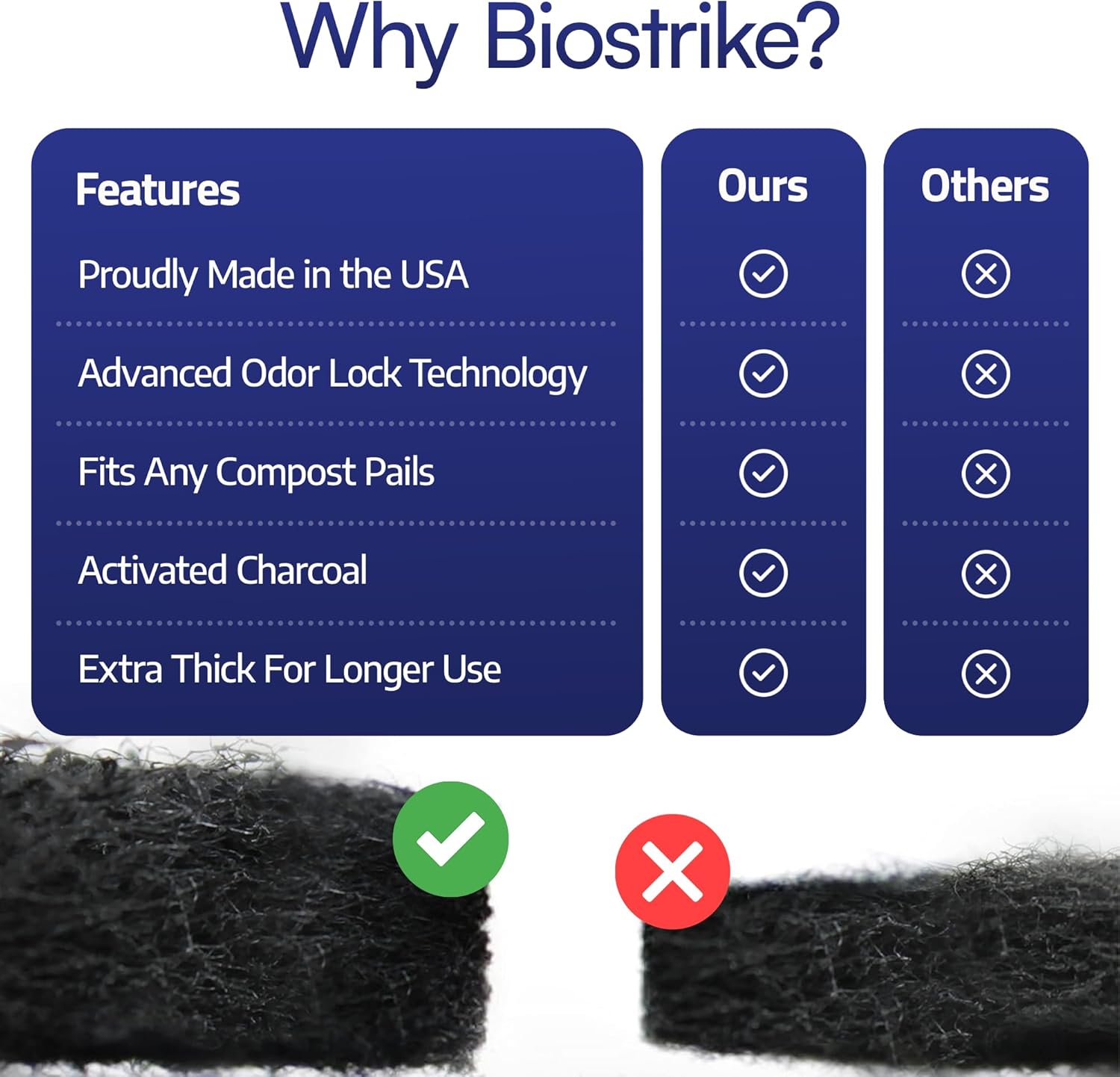 BioStrike Compost Crock - Activated Carbon Filters for Compost Bucket, Control Kitchen Odors, 5.5-inch Round, Made in USA (4 Count)