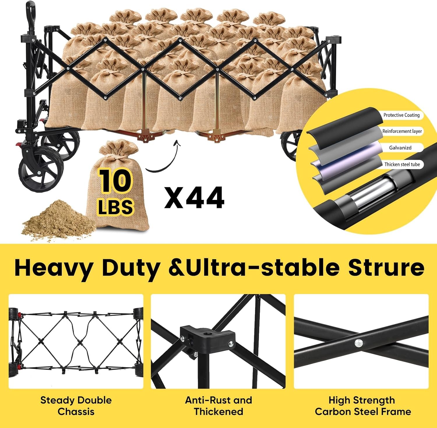 Sekey 48''L Collapsible Foldable Extended Wagon with 440lbs Weight Capacity, Heavy Duty 300L Folding Utility Garden Cart with Big All-Terrain Beach Wheels & Drink Holders. Red&Grey
