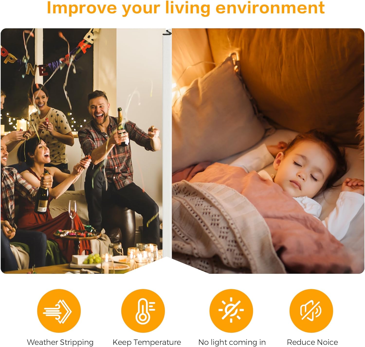- Easy to Install: The door seal requires no adhesive and will not leave marks. Simply insert the door strips into the grooves or recesses to complete a tight seal that will not fall off easily.