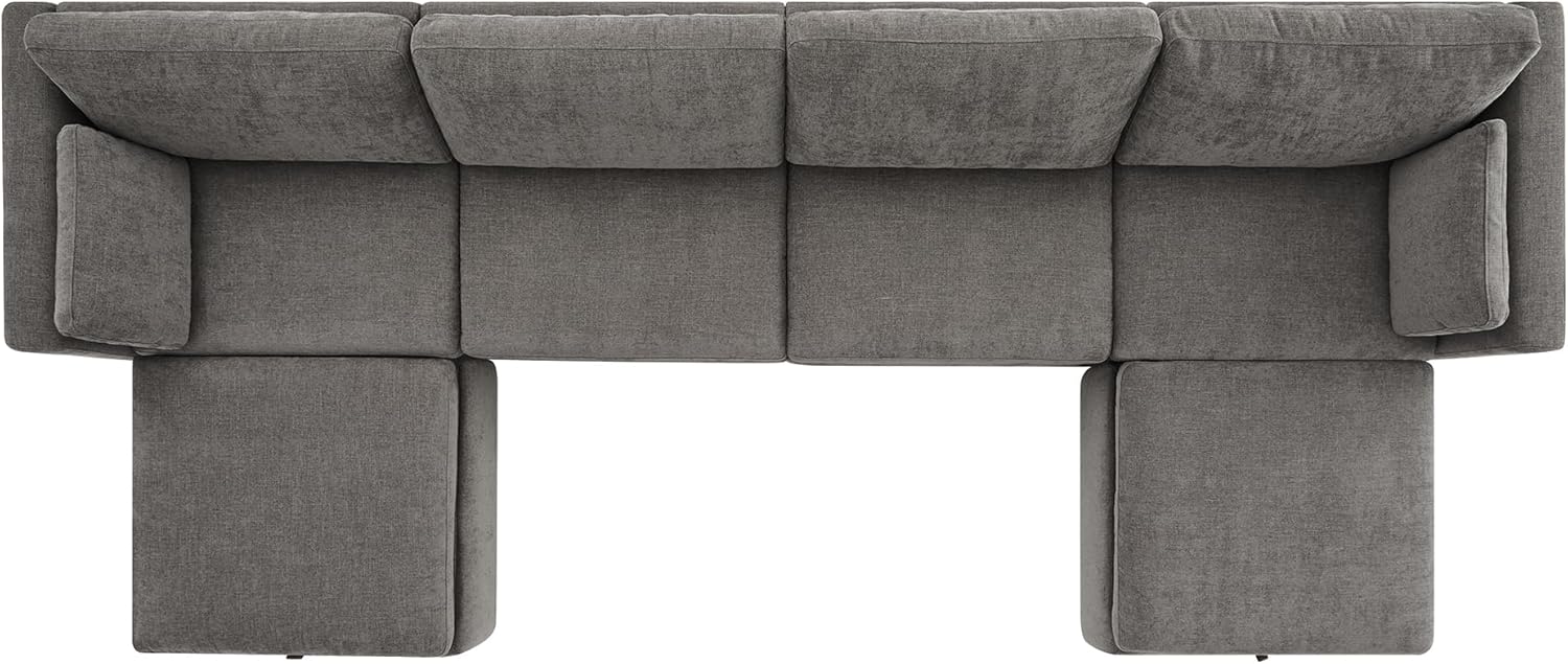- Seven Packages - The U-shaped modular sofa comes with 7 boxes and may arrive at different dates. Each box is designed and packaged to maximize shipping efficiency and fits narrow staircase and elevator. Minimum door width: 18'' Box 1: Arms Box 2: Left seat & backrest Box 3: Right seat & backrest Box 4: Armless chair Box 5: Armless chair Box 6: Ottoman Box 7: Ottoman