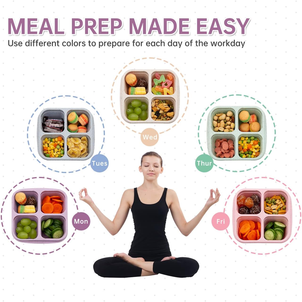 5 Pack Bento Lunch Box,4 Compartment Snack Containers,Divided Snack Box,Meal Prep Lunch Containers FOR Kids/Toddle/Adults,Food Storage Containers for School, Work and Travel