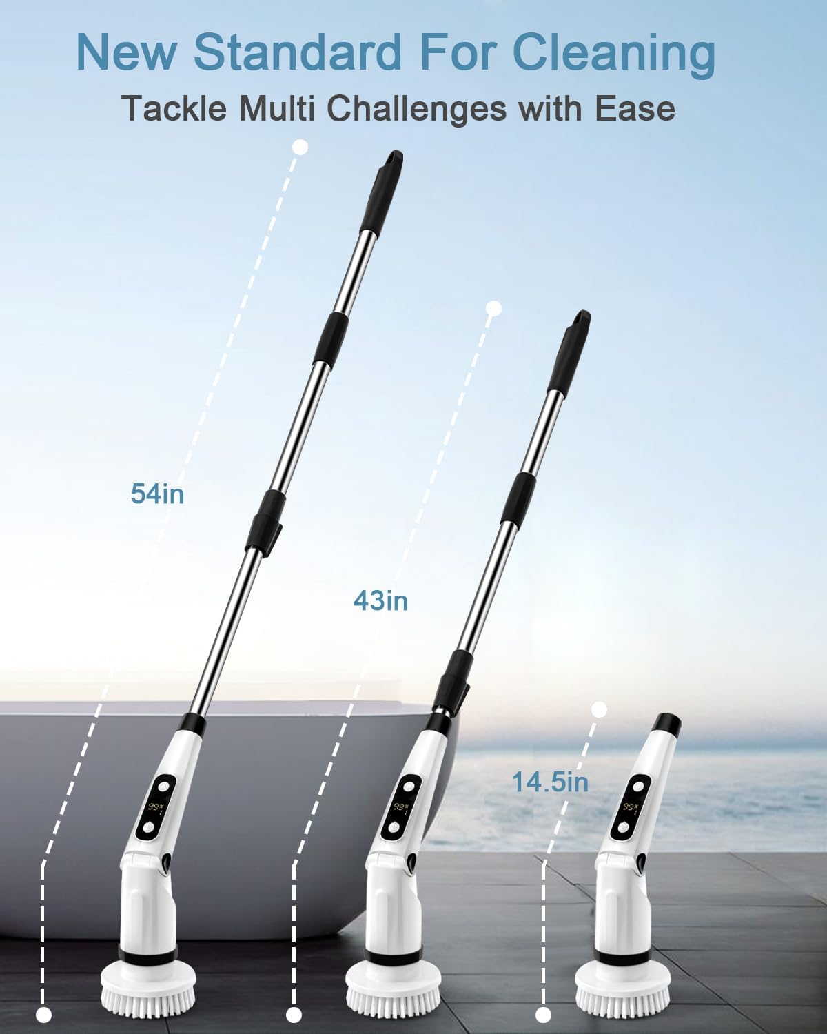 IEZFIX Electric Spin Scrubber, Bathroom Power Shower Scrubber Cleaning Brush for Tub/Tile/Floor/Toilet/Kitchen, 8 Cleaner Scrub Brush Heads, 3 Speeds 450RPM Max, Telescopic Rod Black