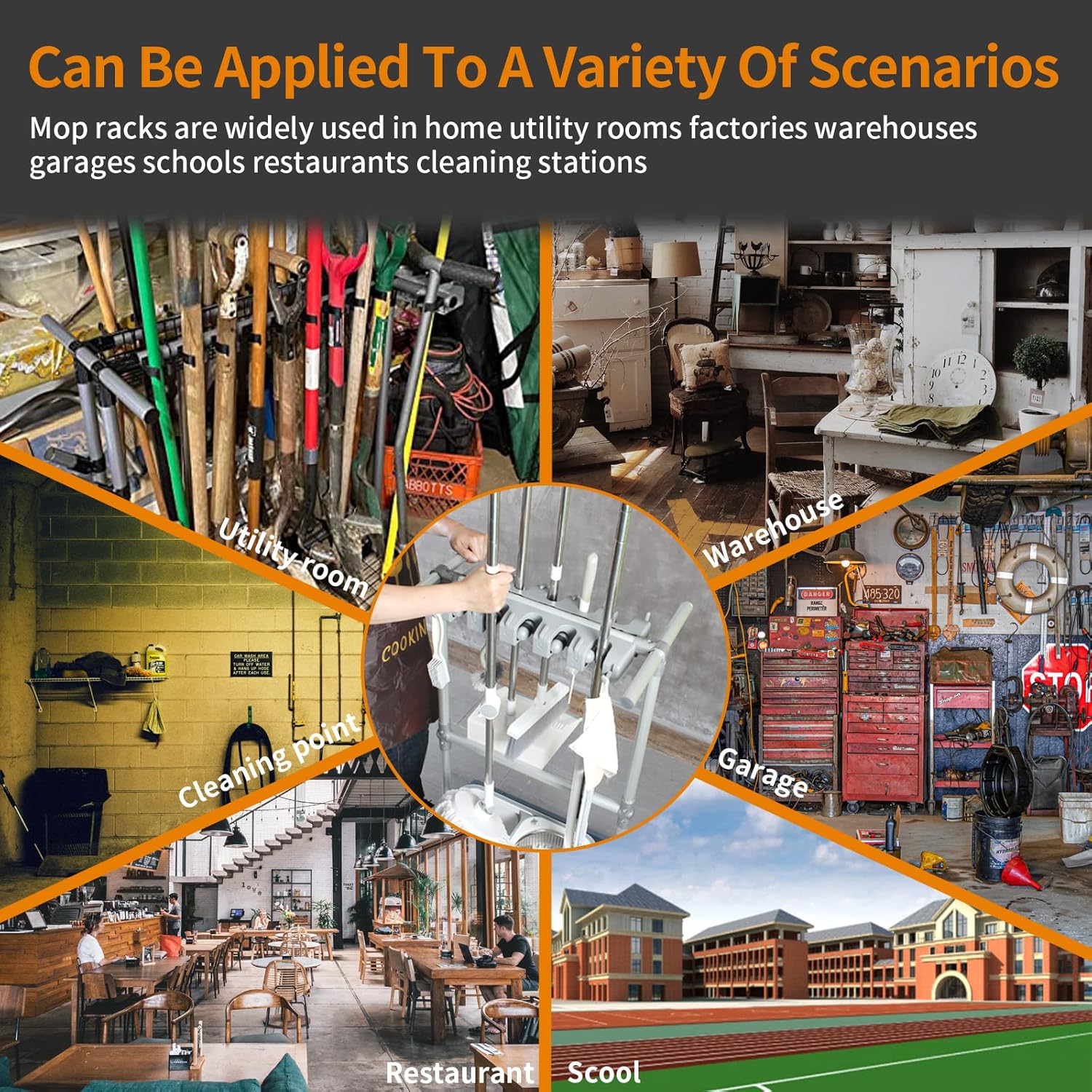 - 4、【Aluminium construction for durability]】mop rack works great - sturdy handle ball locks ,it actually loaded with a real spring ,so can easily hold heavy tools with a no-slip grip it is very durable :it does not lean ,actually it does not tipped over