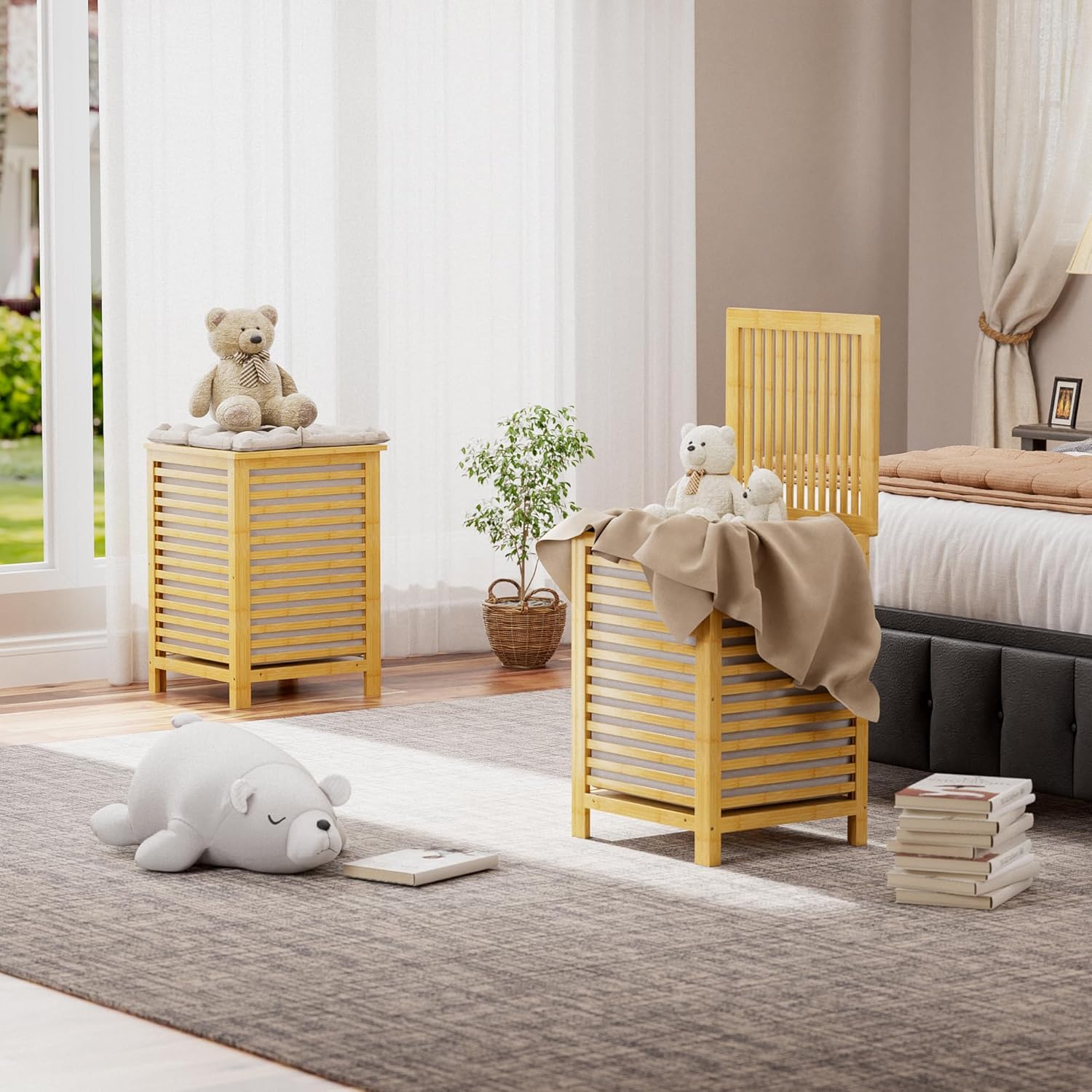 - ★ LARGE CAPACITY YET SPACE SAVING: This spacious double washing hamper measures 18. 5''D x 18. 5''W x 25. 6''H (47 x 47 x 65 cm), up to 120L, roomy enough to hold lots of clothes, towels, toys, etc. Boasting a narrow vertical design for space efficient storage in your bedrooms, bathroom, dorm