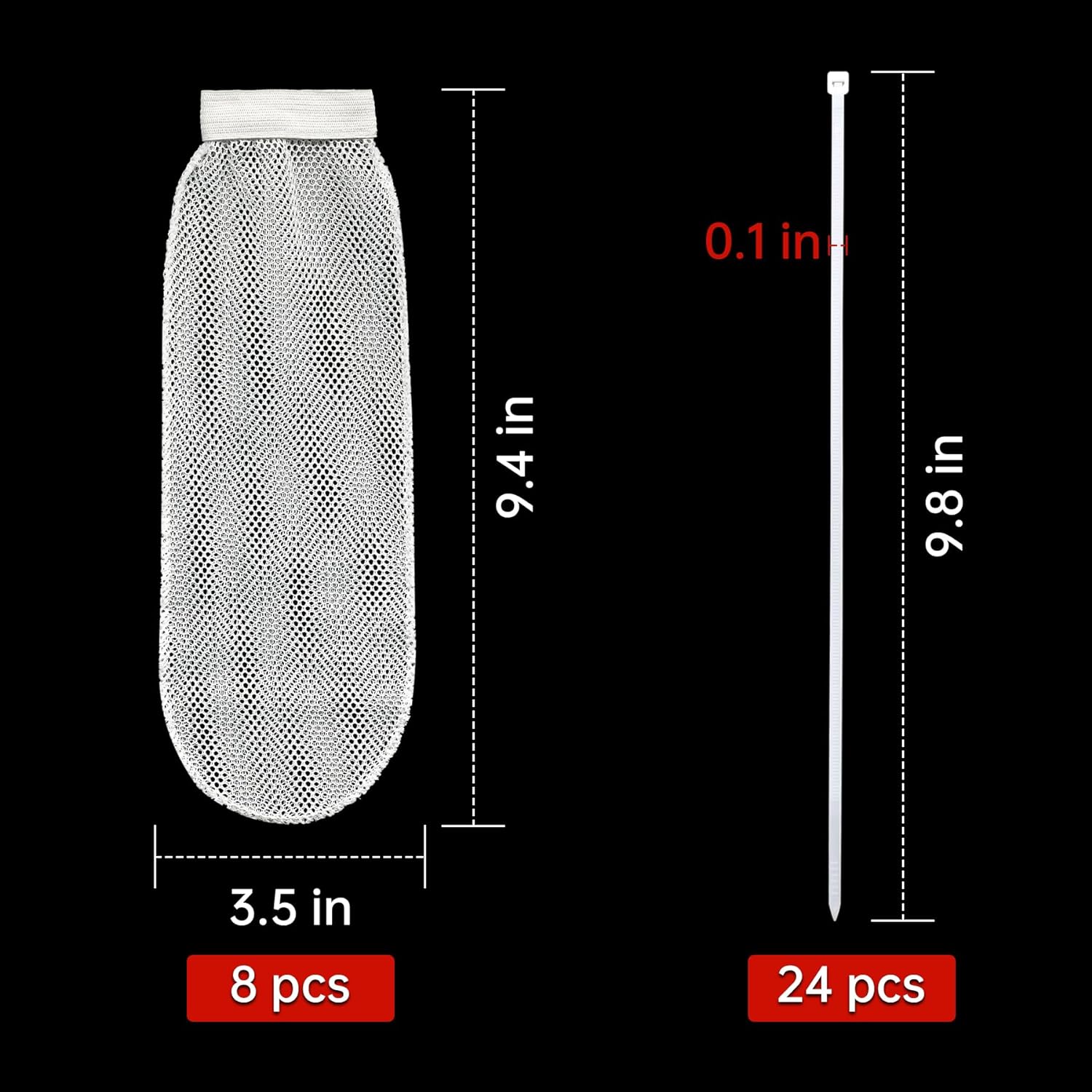 32-Piece Lint Trap and Cable Ties Set for Washing Machine, Includes 8 Nylon Mesh Lint Traps and 24 Cable Ties, Easy and Effective Lint Filtration (White)