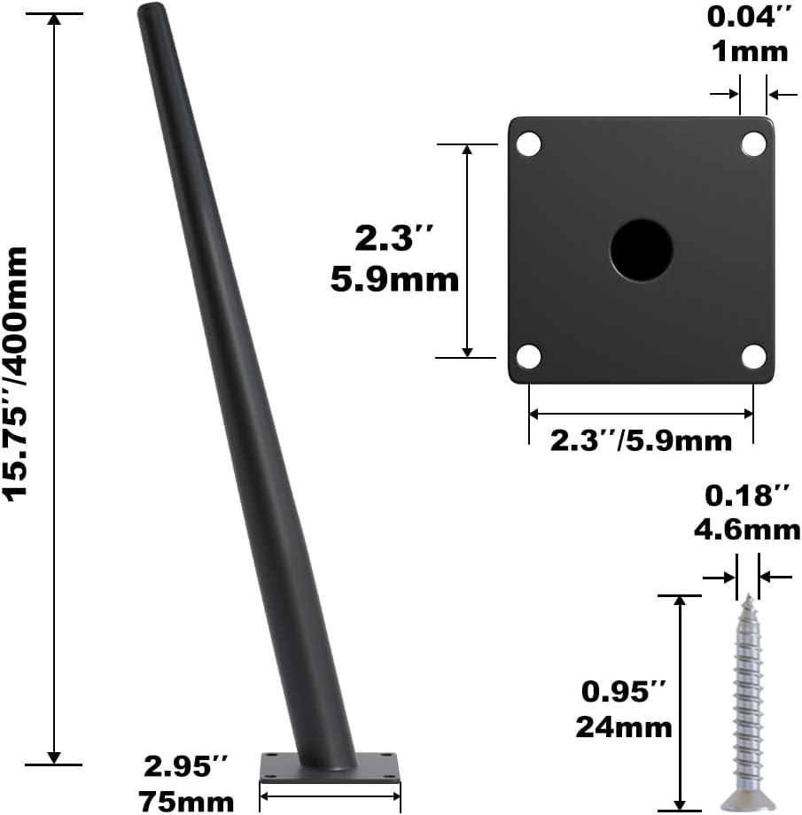 4PCS 16 Inch Matte Black Tapered Angled Legs for Furniture, Metal Mid Century Mordern Feet, Heavy Duty Slanted Stand Legs Kit for Couch, Coffee Table, Desk, Dresser, Sofa, Chair