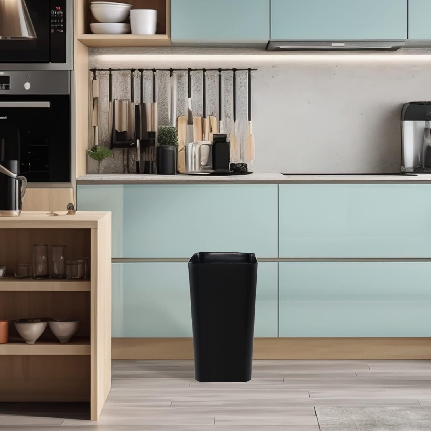 - The rectangular open 4.5-gallon garbage can can be placed under desk, in kitchen cabinet, or in narrow space for compact storage. Its simple and versatile design is an excellent accessory for any home decoration