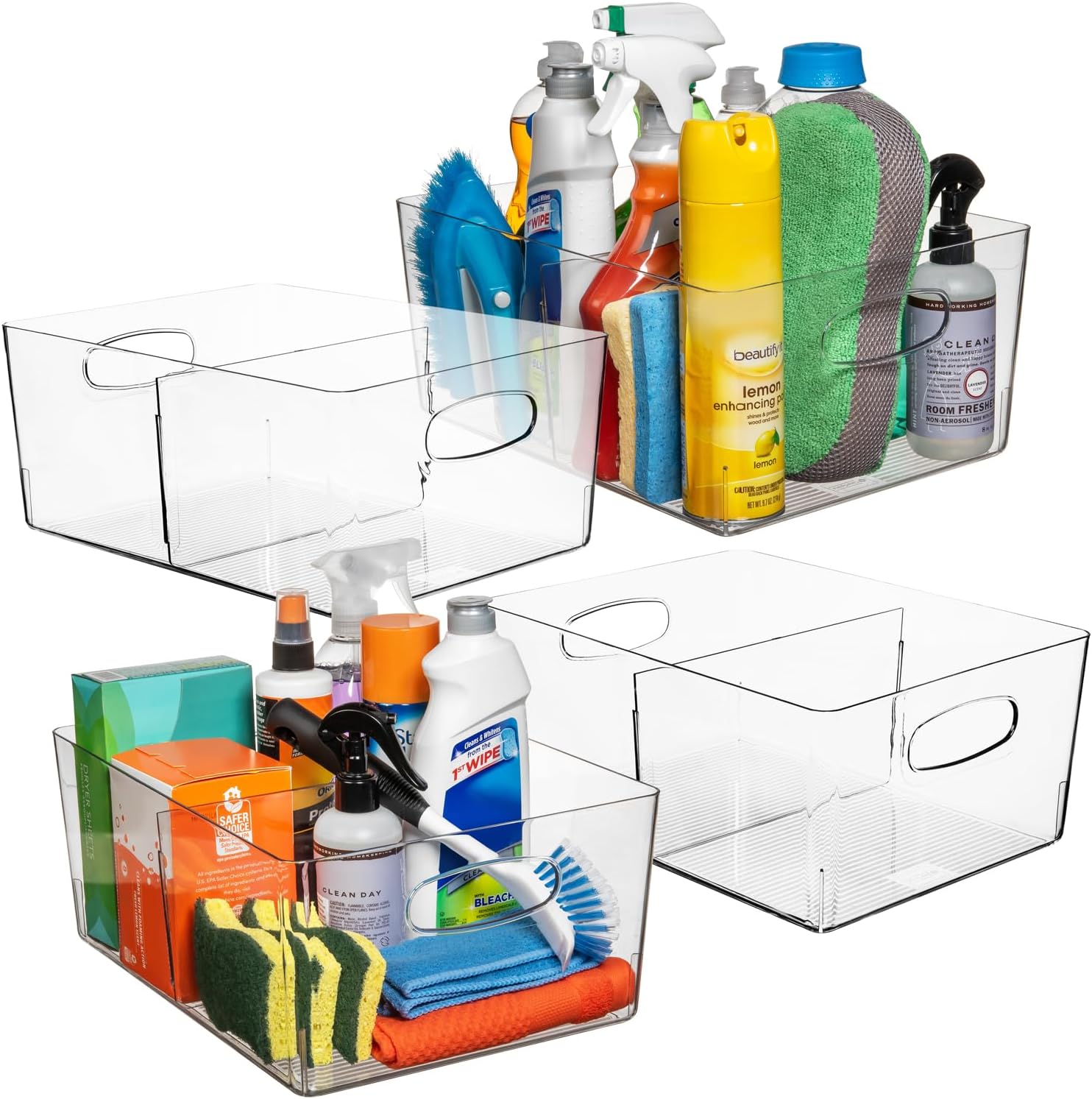 - PORTABLE & STACKABLE – Built-in, easy-grip side handles make it easy to transport from place to place. They also come with a removable divider! These plastic storage bins are perfect for pantry organization and storage or kitchen organization. These clear storage bins are great for anywhere in your home.