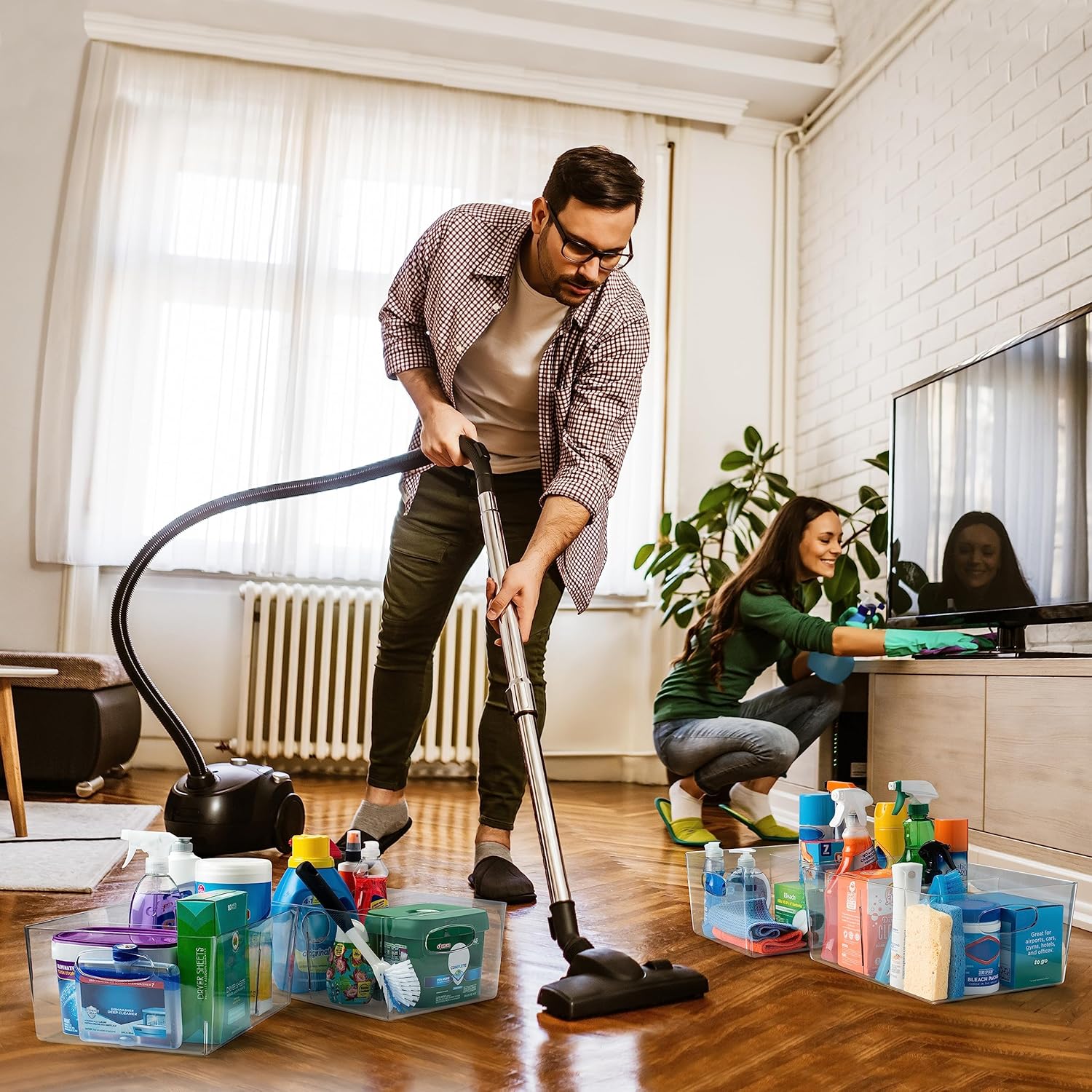 - IDEAL STORAGE CHOICE – These large capacity bins with dividers are great for creating a clean and organized home. Perfect deep plastic home storage organizer bin for cube furniture shelving in office, entryway, closet, cabinet, bedroom, laundry room, nursery, and kids toy room. Ideal for kitchen storage, pantry storage, fridge storage and your pantry cabinet or storage cabinet. You can use these storage organizers anywhere in your home.