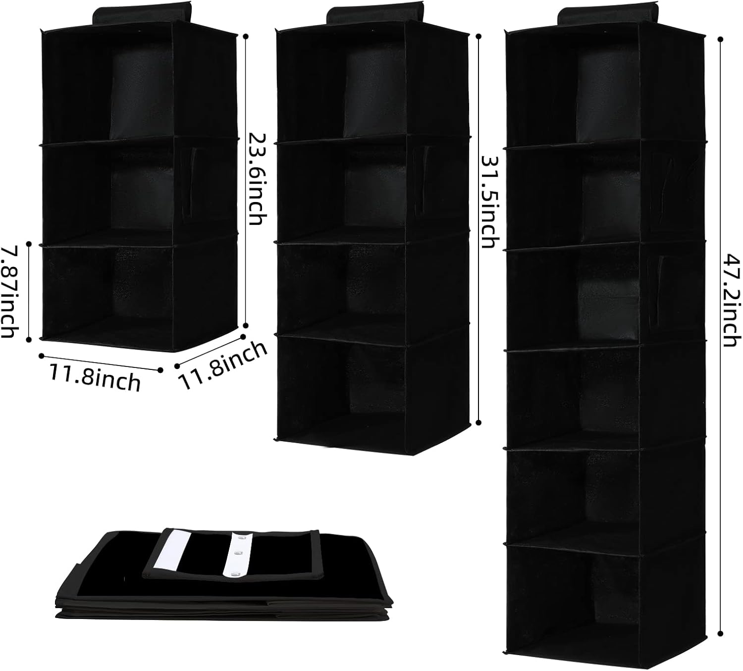 2 Pack Hanging Closet Organizer, 4-Shelf Hanging Shelves with Side Pocket, Black