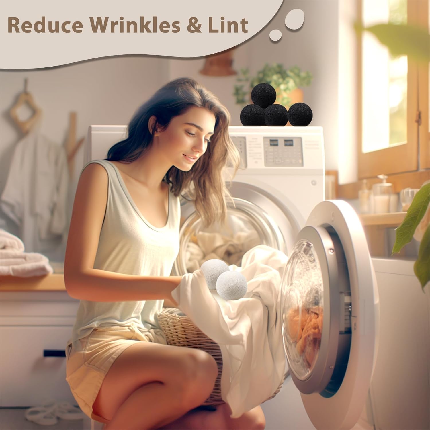 Daily Treasures 2.75"Wool Dryer Balls 12 Pack-Organic Wool Laundry Balls for Dryer,Natural Fabric Softener for Sensitive Skin,Reusable Laundry Dryer Balls Reduce Wrinkles&Drying Time(White & Black)