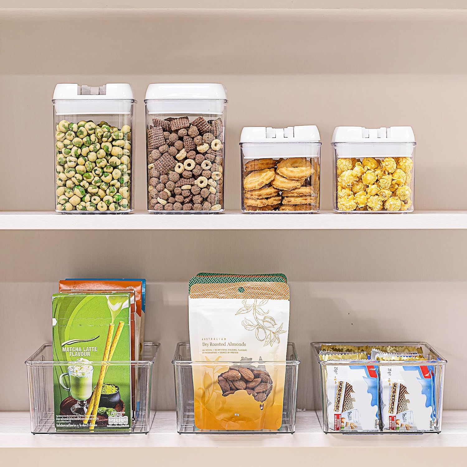 Vtopmart 6 Pack Food Storage Organizer Bins, Clear Plastic Bins for Pantry, Kitchen, Fridge, Cabinet Organization and Storage, 4 Compartment Holder Packets, Snacks, Pouches, Spice Packets