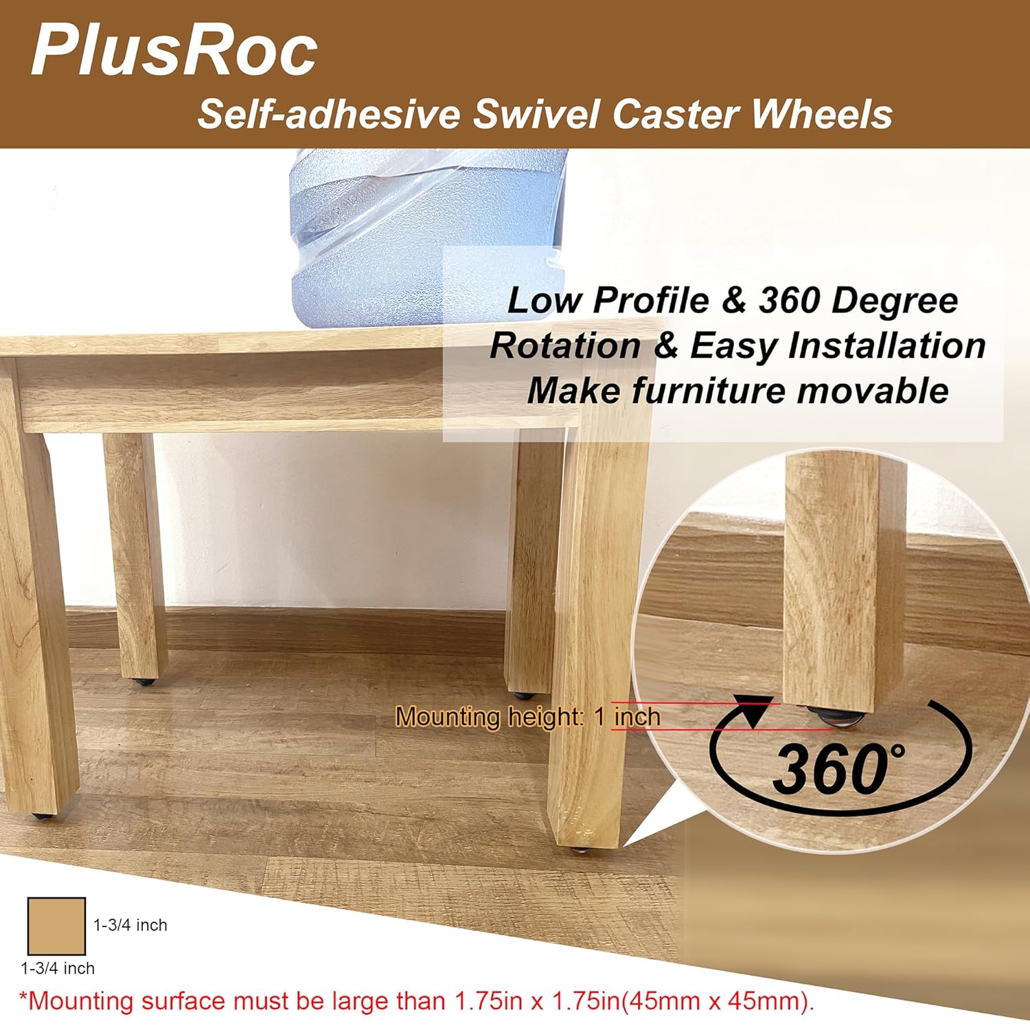 - 【Quick & Easy Installation】Install PlusRoc swivel wheels on the feet/legs of home furniture such as coffee table, shelves,cabinets,dressers,plant stands with included adhesive pads or screws. Make moving furnitures quick and easy.