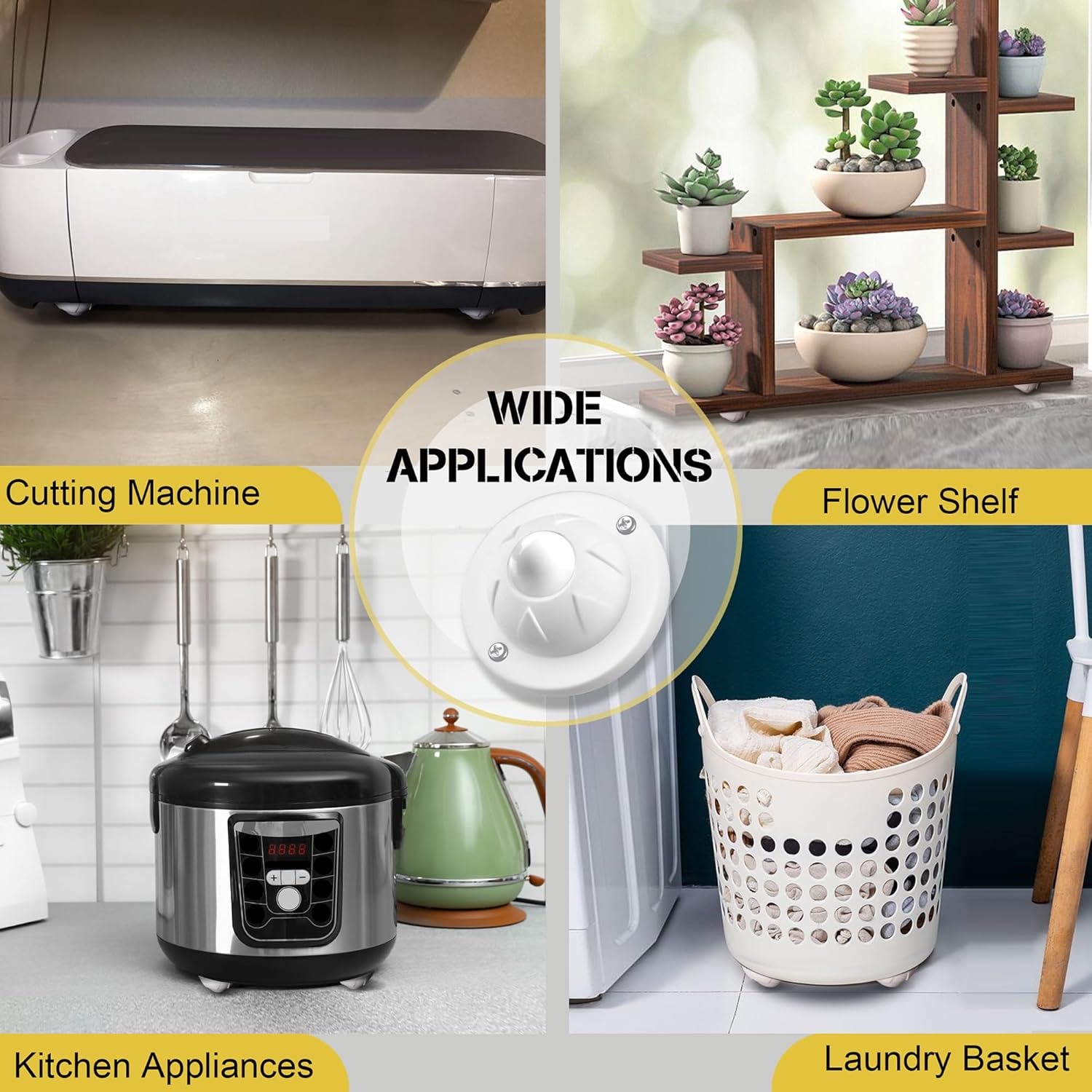 - 【Low Profile & 360 Degree Rotation】: Low profile casters won't add too much height to the objects underneath kitchen cupboard/cabinet. Larger nylon ball in ABS bracket rolls more smoothly and silent compared with other small steel ball.