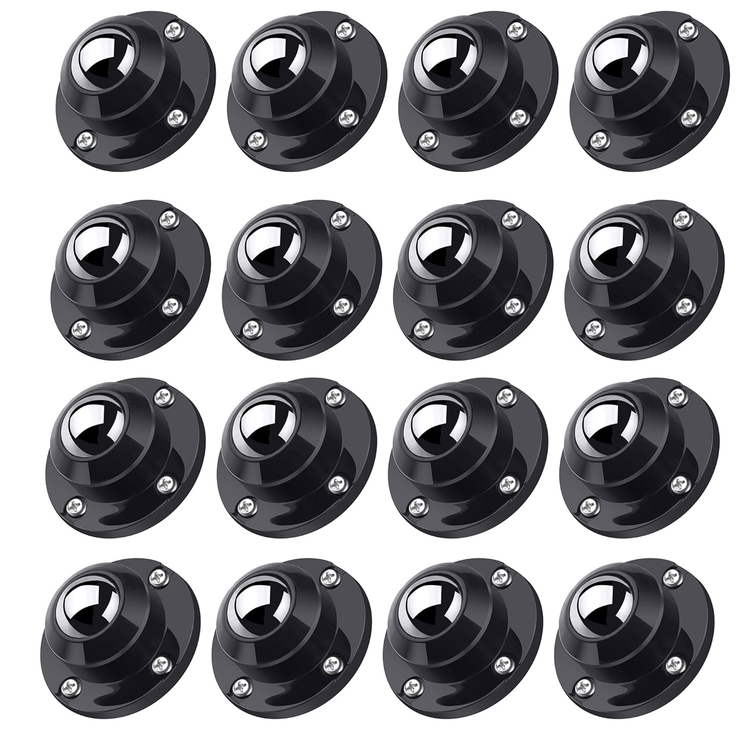 PlusRoc 16 Pack 1 Inch Self Adhesive Caster Wheels for Furniture Mop Bucket, Load Capacity 28 LBS Per Wheel, Low Profile Swivel Wheels for Small Appliance Storage Bins