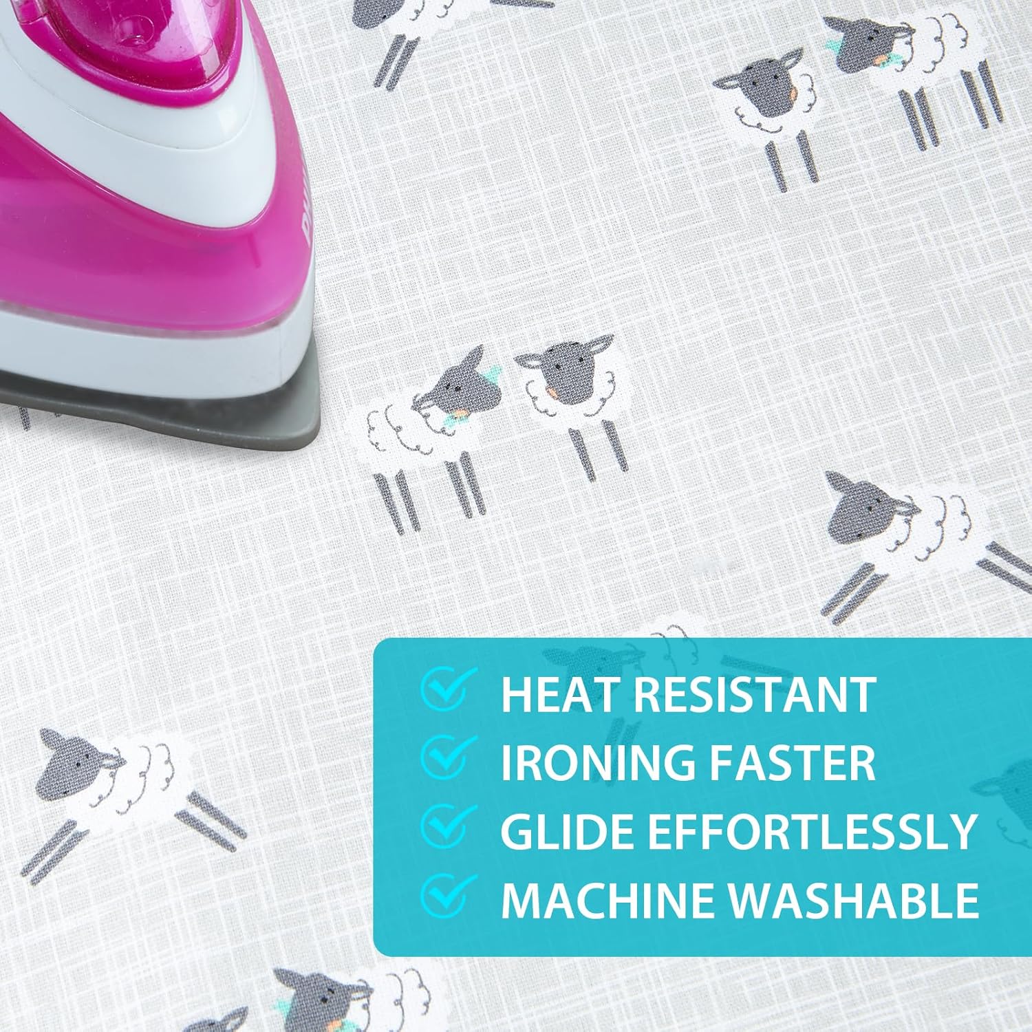 - ELASTICIZED EDGES: The tailor made high quality elastic skirt can firmly fix the ironing cover so that it is tightly attached to the ironing board
