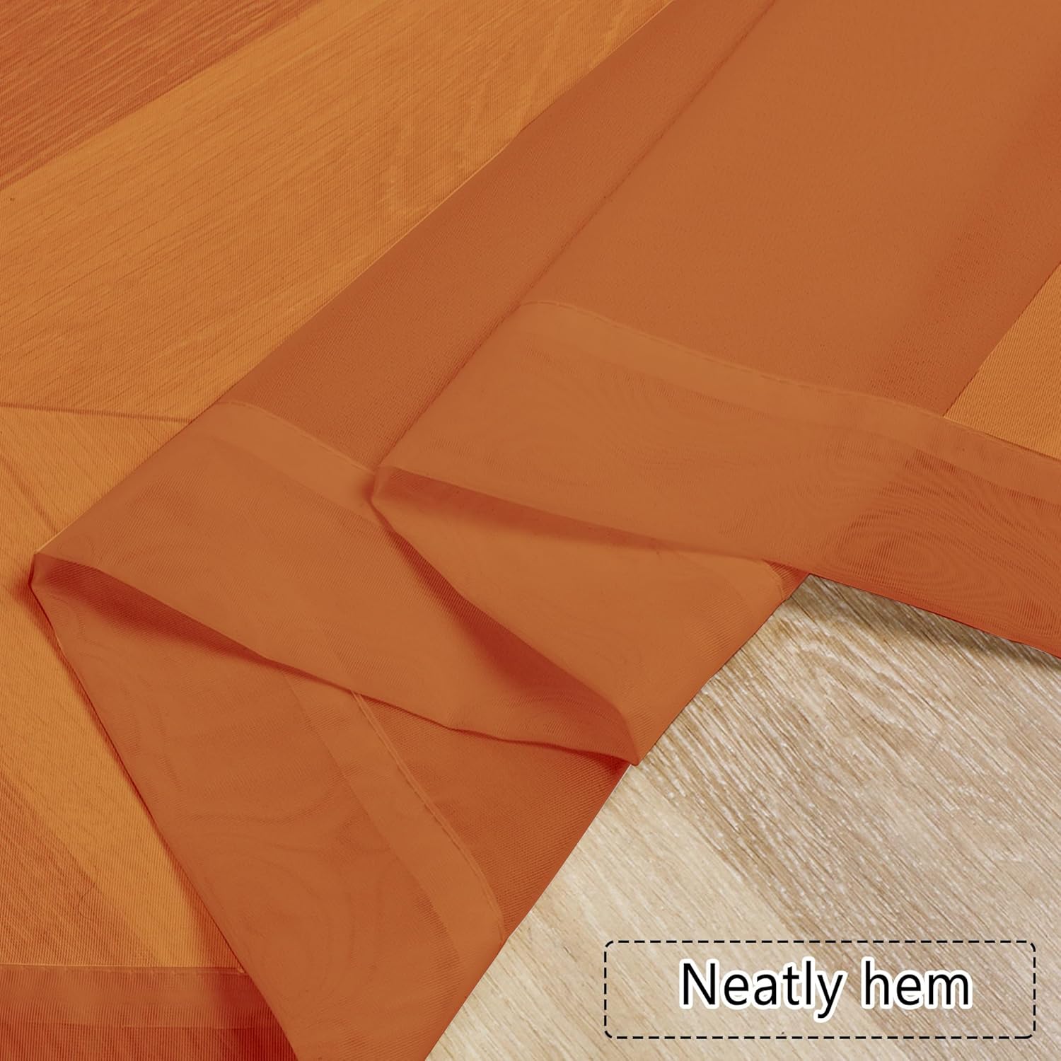 Chyhomenyc Sheer Valances for Windows 2 Pack, 42Wx14L Inches Short Valance for Living Room Bathroom Cafe Laundry Basement, Cute Orange Dual Rod Pockets Voile Valance, 1Pair