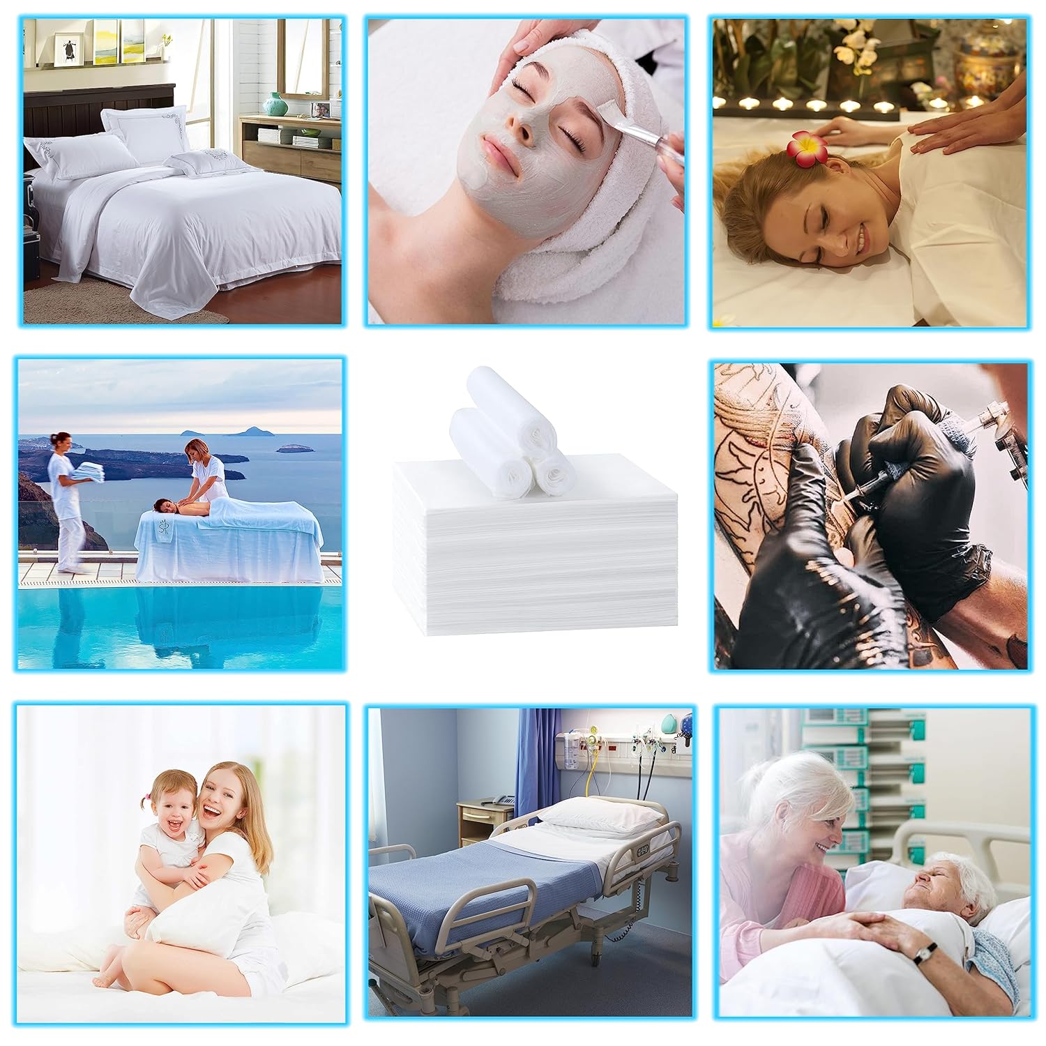 - 【Spa Blankets For Esthetician】Non woven fabric massage table sheets are disposable, you just need to replace the sheet after using, saving your time for doing the laundry, which can keep the mattress dry and clean, and are breathable and soft. They are very gentle on the skin, providing you with a comfortable and caring experience.