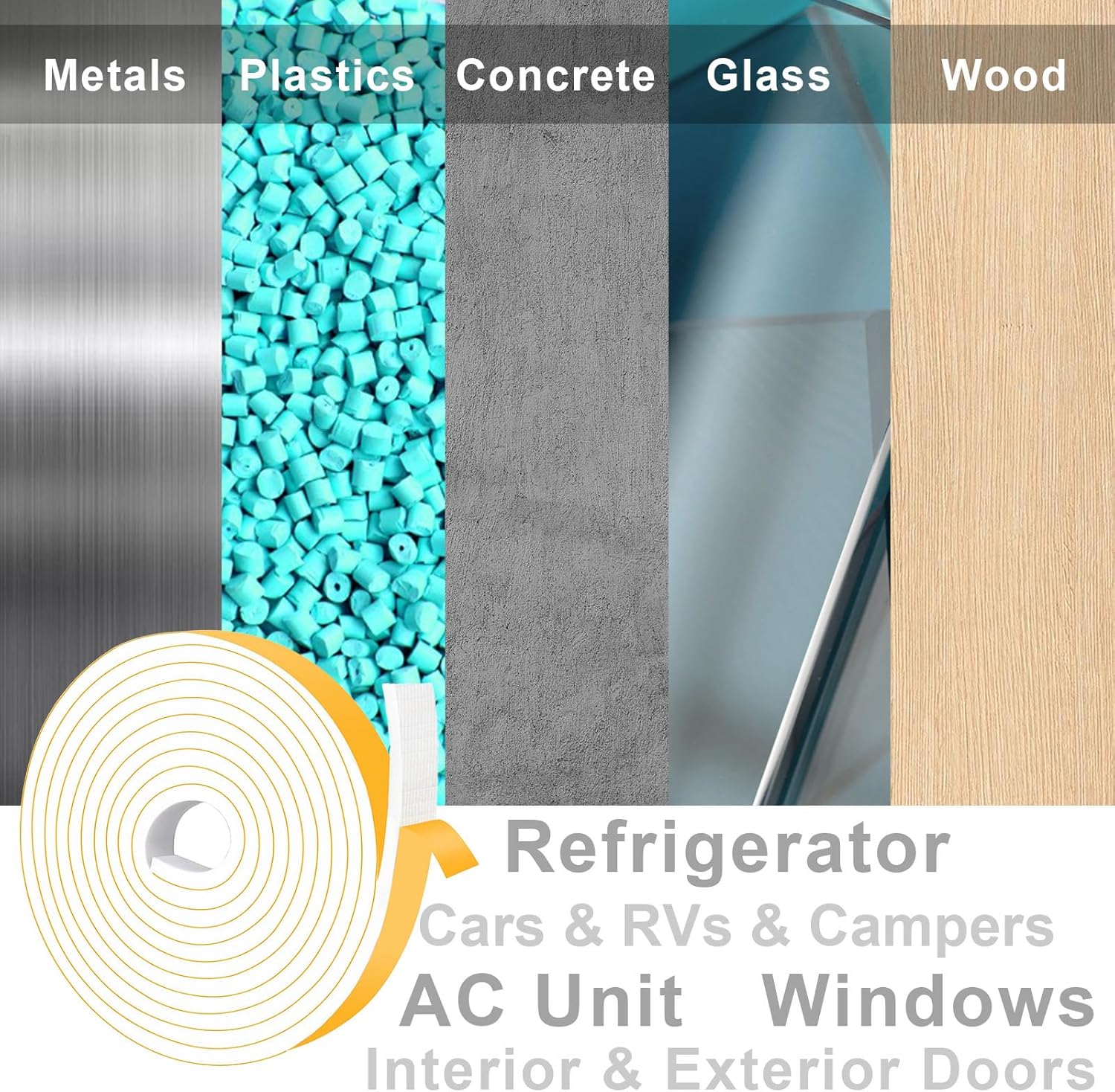 - 🟠WIDE APPLICATION-Trisiki's weather foam tape is a tough, durable self-stick tape with minimal compression and can help prevent rattles, vibrations and squeaks. It's widely used as a weatherstrip, or as a gasket or to cushion and stabilize major appliances, such as doors, windows, furniture, electrical cabinets, speakers, toys, handicrafts, sports equipment, vents, air conditioners, plumbing, hvac. Plus, on cars, trucks and boats