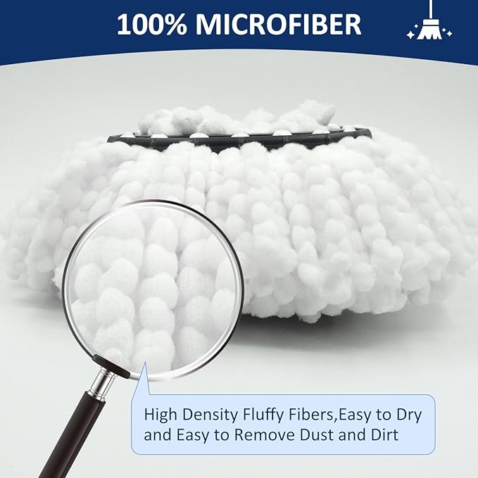 - ใQuality Microfiber Mop Heads Refillsใ- Includes 2 packs mop heads replacements which made of 100% super absorbent microfiber . Effortlessly clean dirt and dust from hardwood, ceramic tile, laminate, marble, and glass.Durable and machine washable.