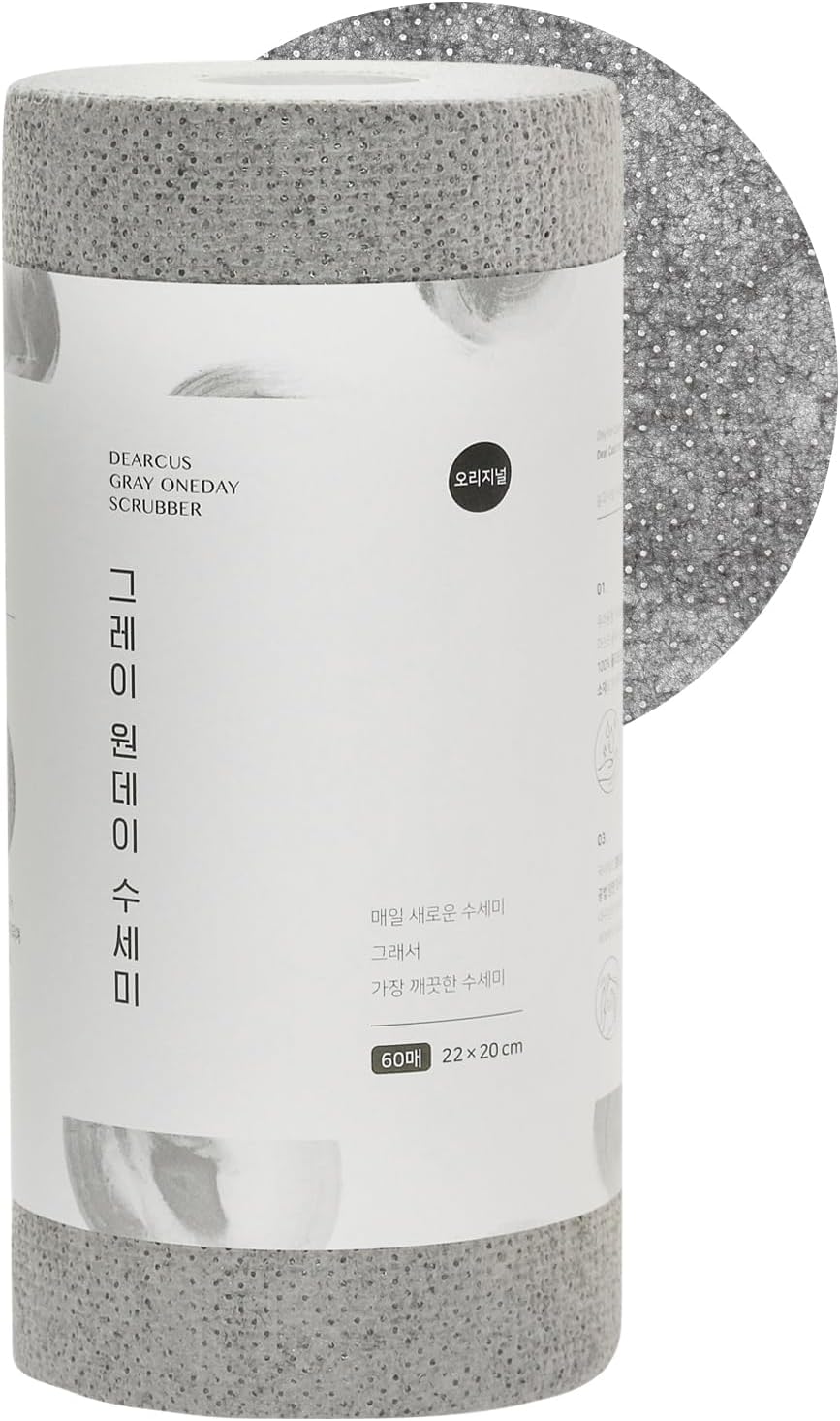 DEARCUS Gray One Day Scrubber - No Odor Dishcloths for Washing Utensils, Cookware, & Cooktop – Multipurpose Lint Free Cleaning Cloths for Kitchen Made of PP - for One Day Use, 1 Pack 60 Sheets