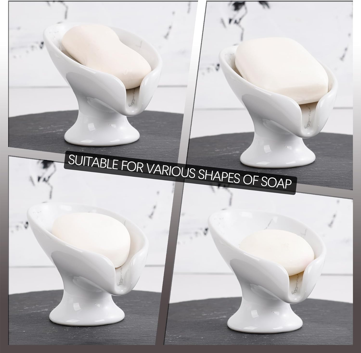 Soap Dish, Self Draining Bar Soap Holder for Bathroom Sink, Leaf Shaped Drainage Ceramic Marble Porcelain Decorative Soap Dish, No Suction Cup, ANTIS'S HOME