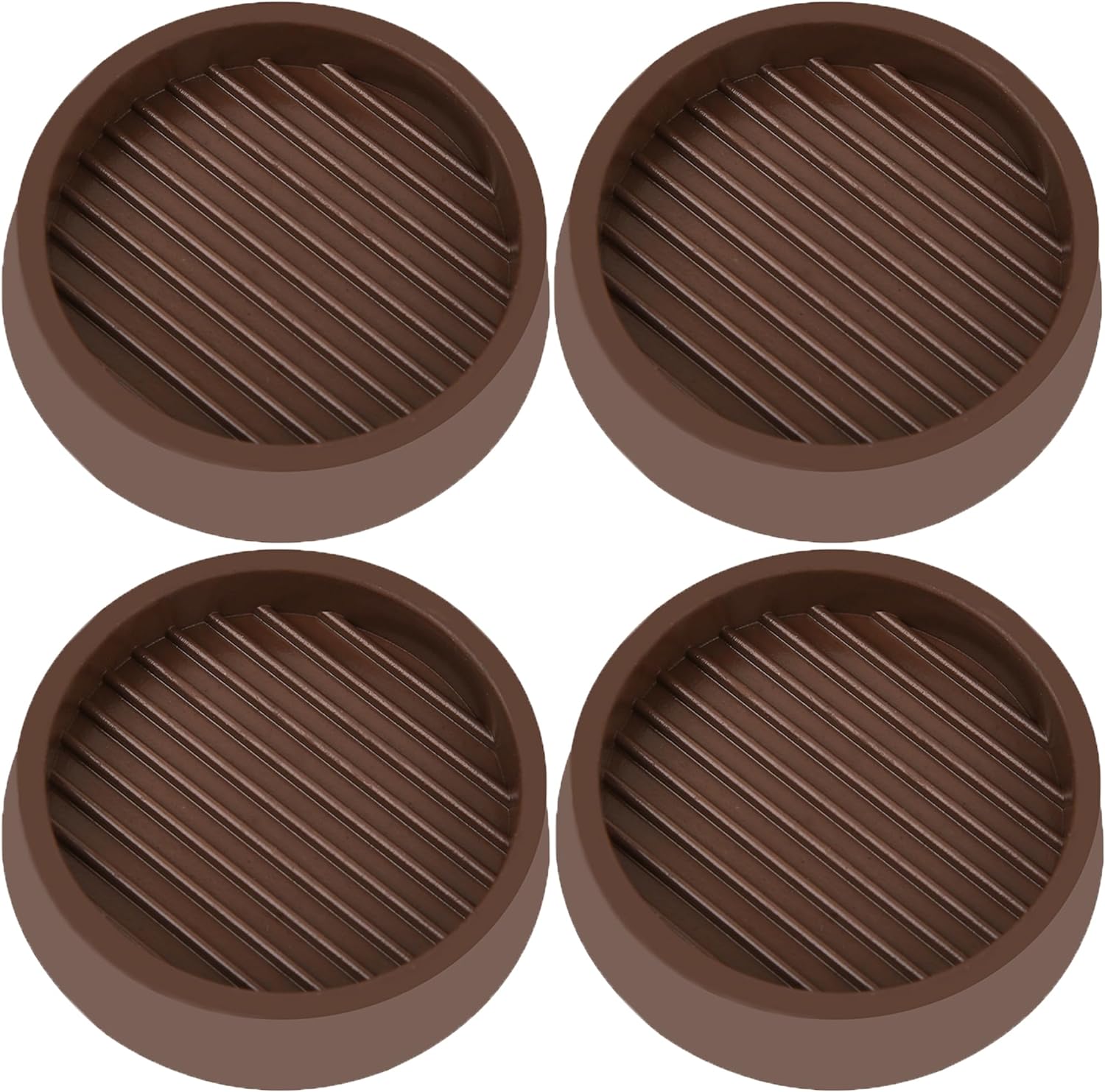 3X3 Round Rubber Caster Cups, Non Slip Furniture Pads, Anti-Slip Gripper, Anti Skid Furniture Feet, Anti Slide Floor Protector for Bed Couch Table Chair Stoppers - Brown, 4 Pack