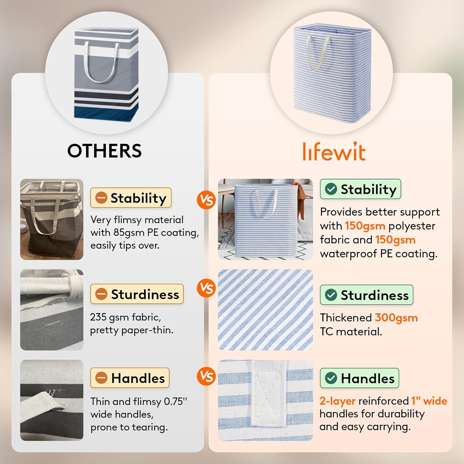 Lifewit Laundry Hamper Large Collapsible Laundry Basket, Freestanding Waterproof Clothes Hamper Storage with Easy Carry Handles for Clothes in Bedroom Bathroom College Dorm for Adults, Blue, 100L