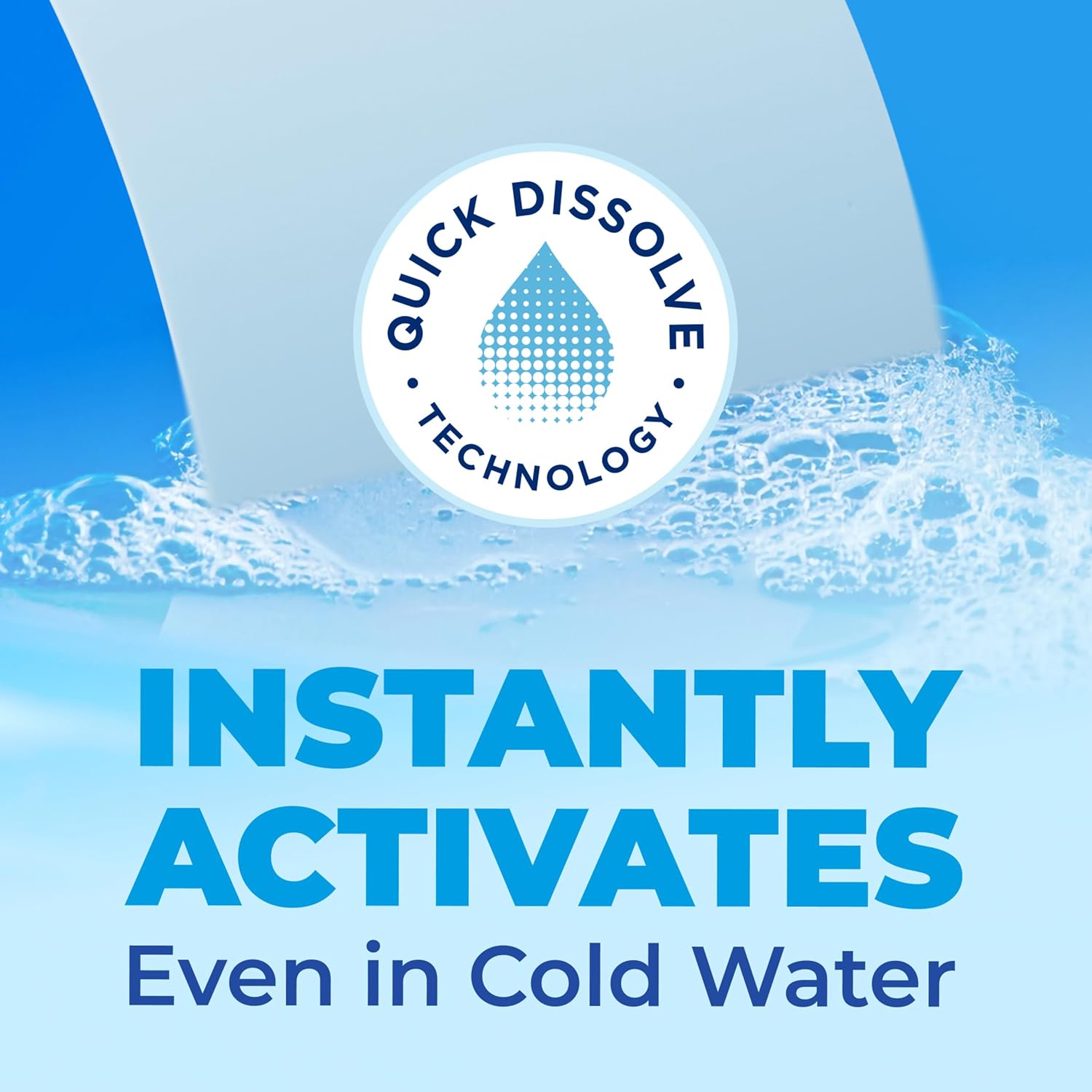 - These concentrated HE laundry detergent sheets use Quick Dissolve Technology to dissolve quickly and fully in all wash temps, even cold water, to deliver a deep clean in high efficiency washing machines
