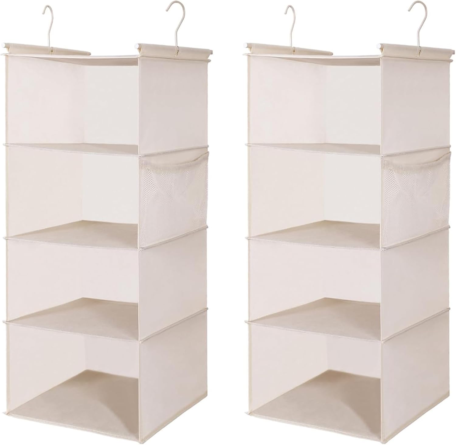 MAX Houser 4 Tier Shelf Hanging Closet Organizer, Closet Hanging Shelf with 2 Sturdy Hooks for Storage,2 Pack, Foldable (Beige)
