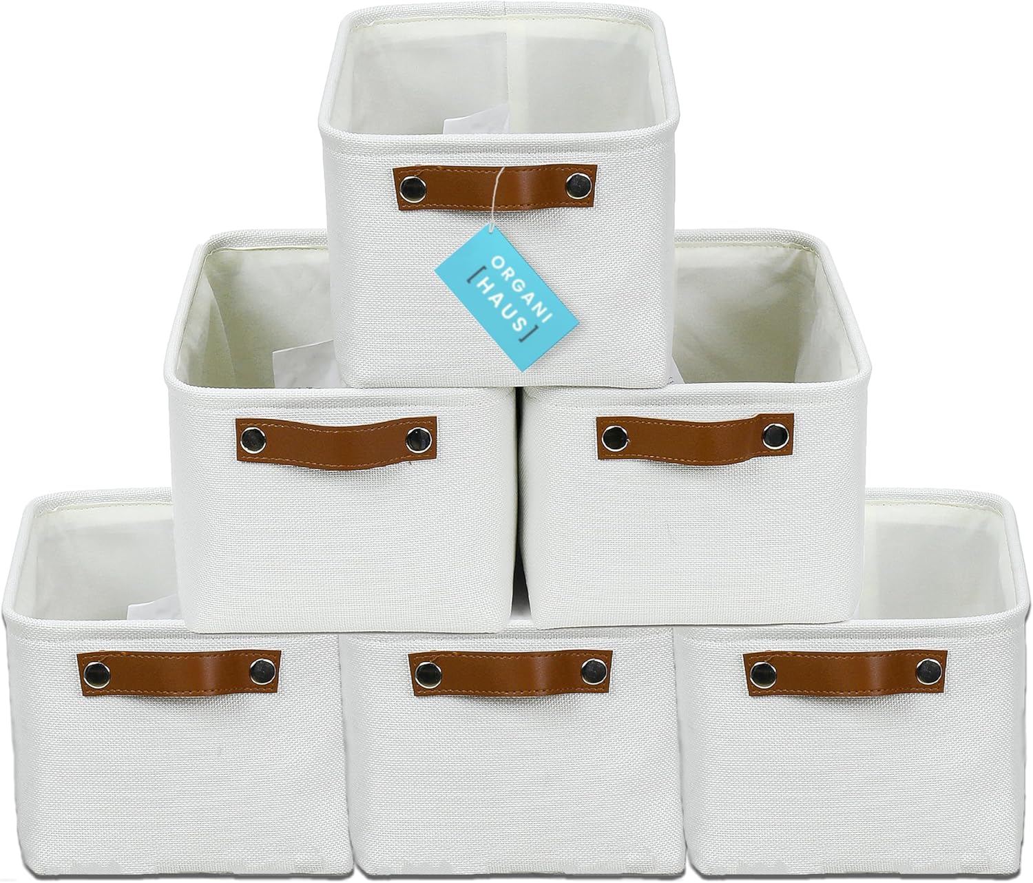 OrganiHaus Small Fabric Storage Baskets for Shelves 6 Pack, 12x8in Closet Storage Bins for Shelves, Cloth Baskets for Organizing, Linen Closet Organizers, Fabric Basket, White Basket