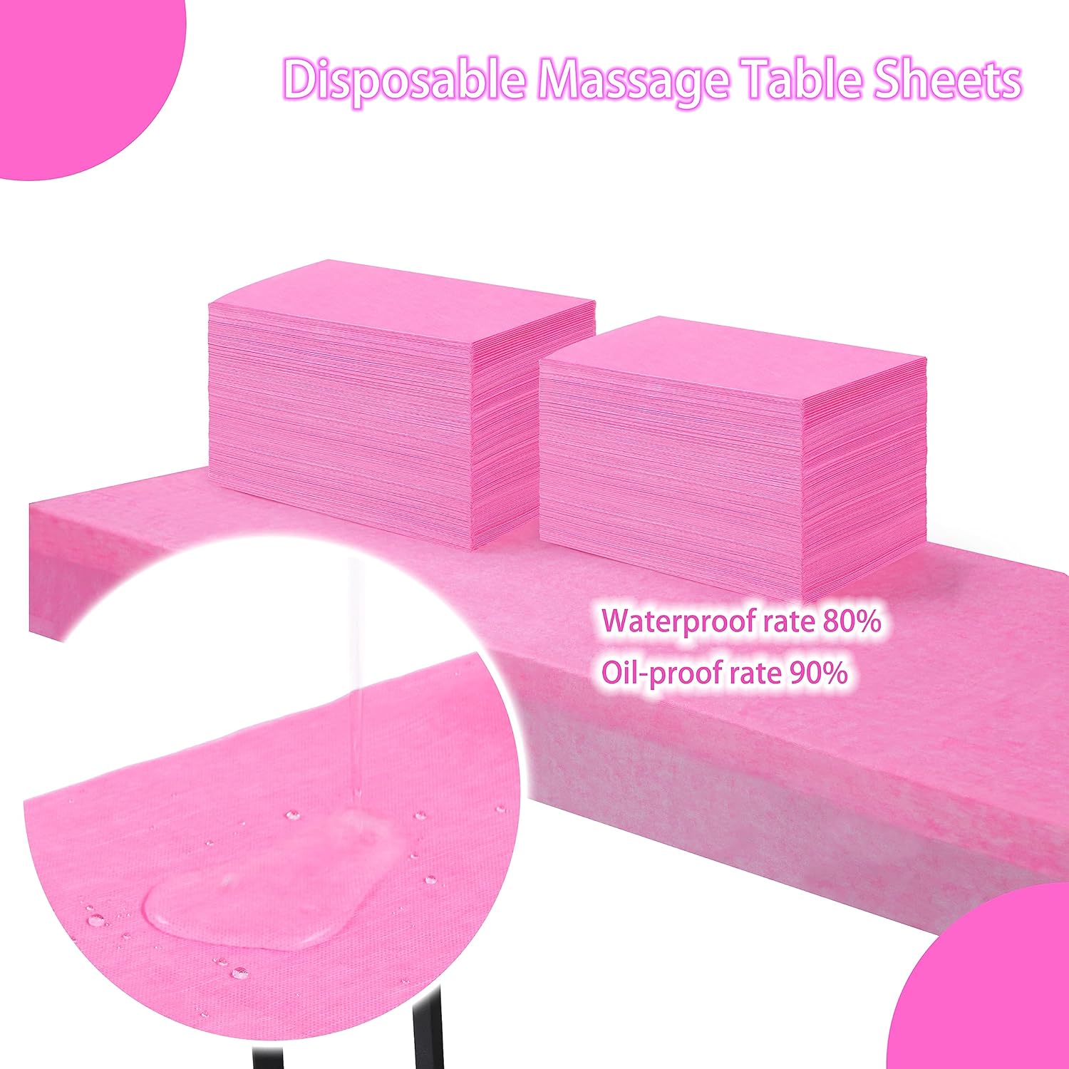 Disposable Bed Sheets for Massage Table 200 Pcs 31" x 71" Waterproof Massage Table Sheets Soft Non Woven Fabric SPA Massage Table Bed Cover Breathable for Beauty Tattoos Waxing Travel (Pink)