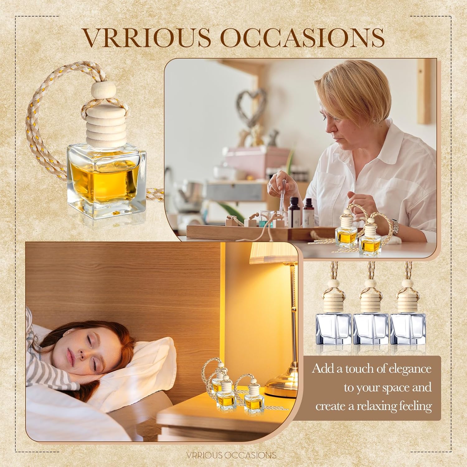 - A Wide Range of Application: with charming and cute appearances, the car perfume bottle is suitable for placing in your cars, bedrooms, offices, kitchens, bathrooms, restrooms, wardrobes, bookshelves, tables, windowsills and more; Not only will it release the fragrance, but also add a touch of elegance and quiet atmosphere to your space