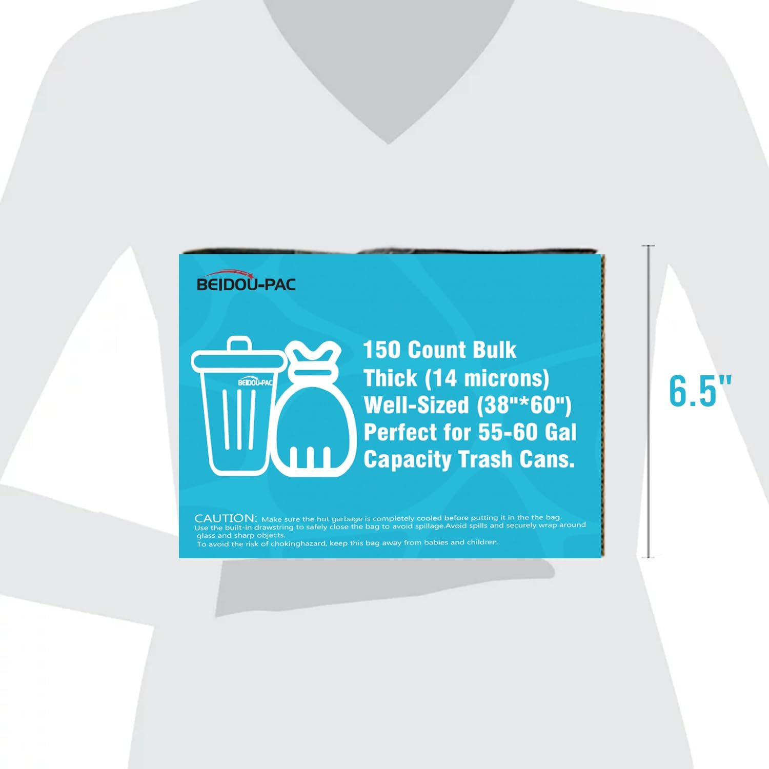 - 1, Product information: BEIDOU-PAC 55-60 gallon large clear plastic recyclable garbage bags, Size: 38"* 60"x 14 mic, Total 150 clear bags bulk (25 PCS/ROLL , 6 CORELESS ROLLS/CTN), Perfect for 55-60 Gal Capacity Office, commercial, industrial or residential waste.