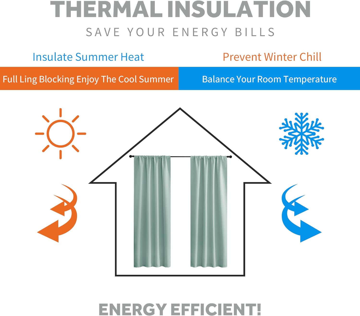 - ENERGY SMART - Curtains are work well on balance the temperature inside and outside by insulating summer heat and winter chill, so that these room darkening curtains can reduce the energy waste and save the daily bill effectively.