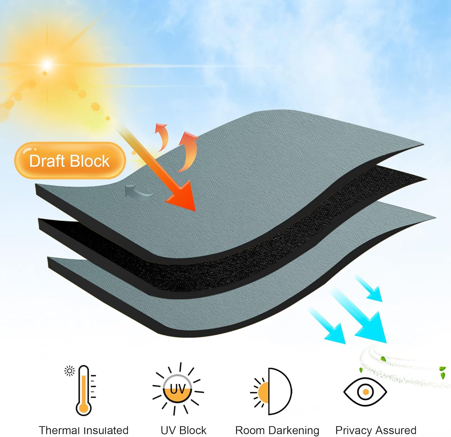- ENERGY SMART - Curtains are work well on balance the temperature inside and outside by insulating summer heat and winter chill, so that these room darkening curtains can reduce the energy waste and save the daily bill effectively.