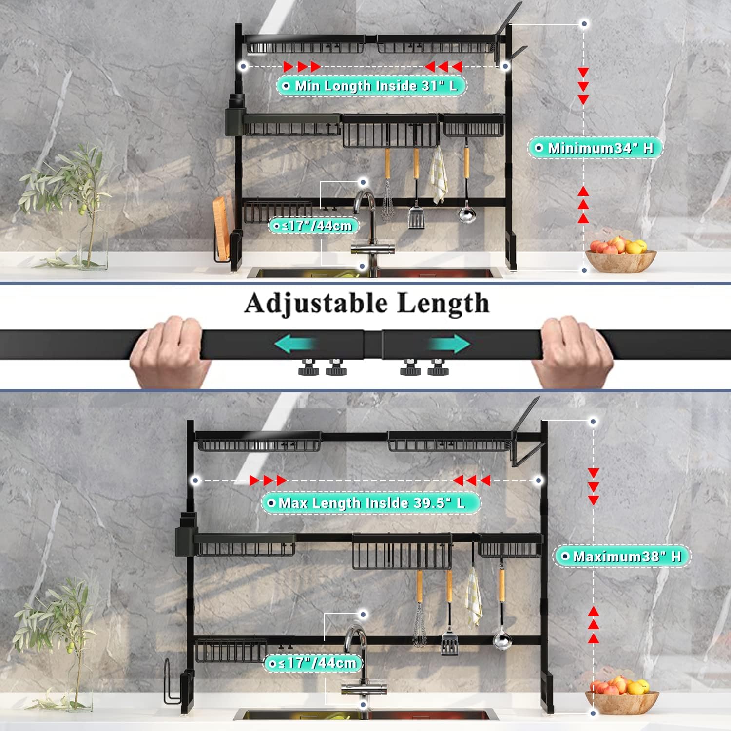 - 【Warning】Dimension: 31 - 39.5L x 12W x 34 - 38H (inches). The length of your sink should be ≤39.5" and the height of the faucet should be ≤ 17". The Height can be adjusted from 34" to 38". So if the area above your sink is too small, please choose our 2 tier over sink dish rack.