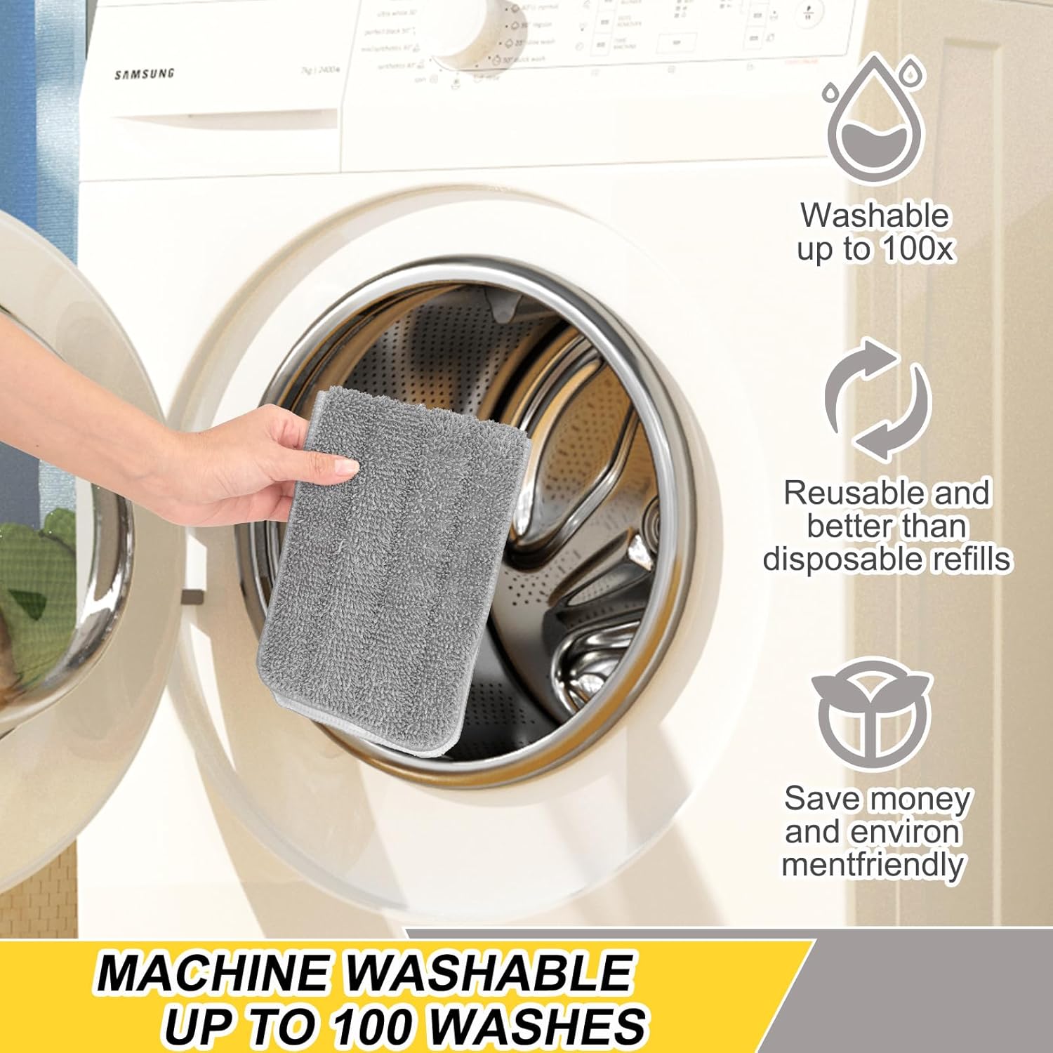 - Superfine Microfiber - Our spray mop heads adopt the high quality microfiber whose decontamination ability is further improved, fully absorb pet fur, hair, debris, dust, oil or other stubborn stain, durable and reusable.