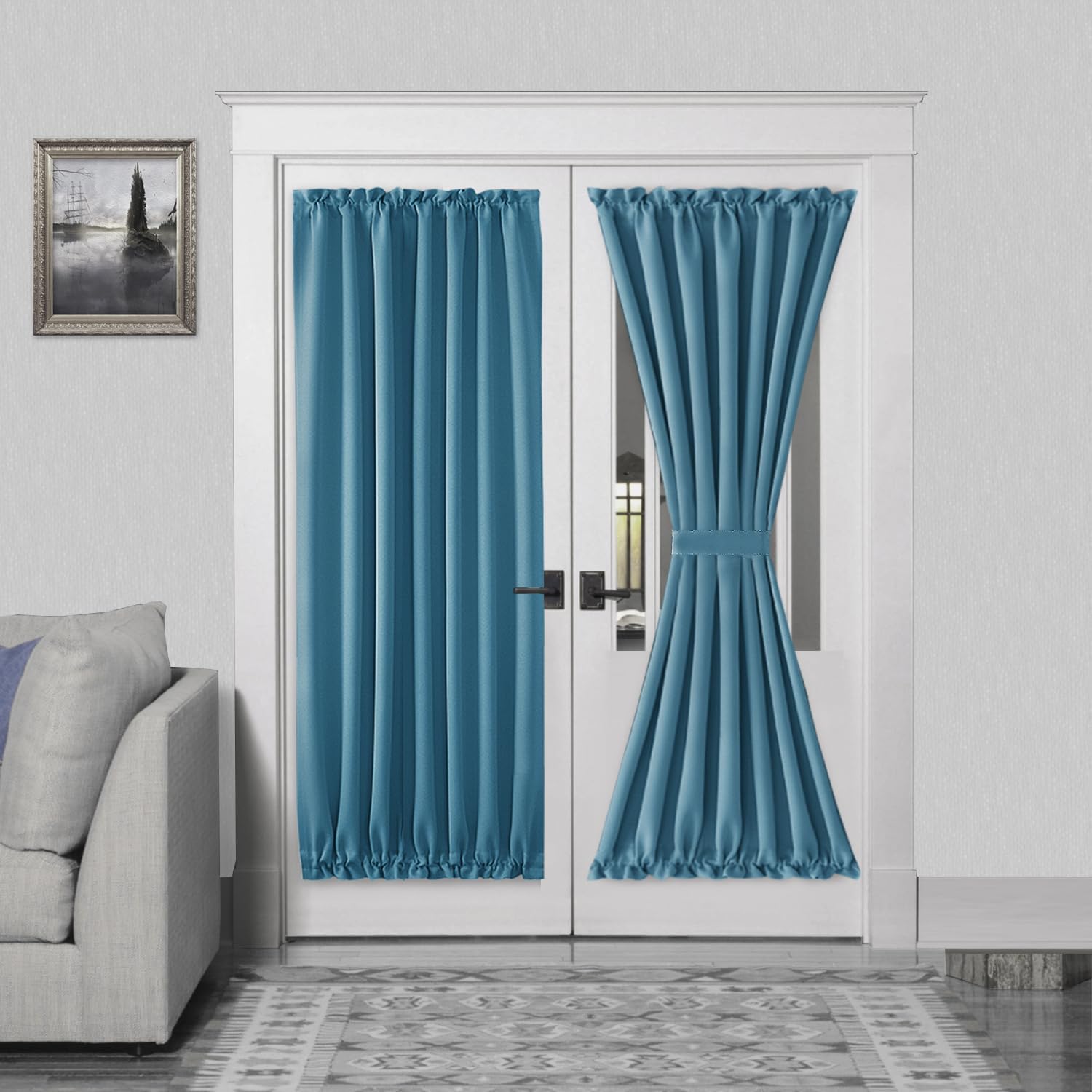 DWCN French Door Curtains – Rod Pocket Thermal Blackout Curtain for Doors with Glass Window, Kitchen and Patio Doors for Privacy, 54 X 72 Inches Long, 1 Curtain Panel with Tieback, Stone Blue