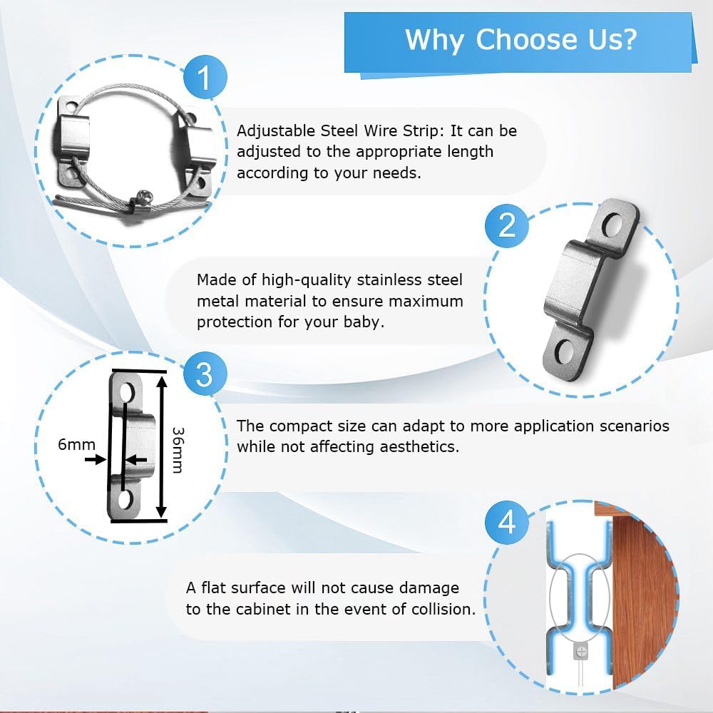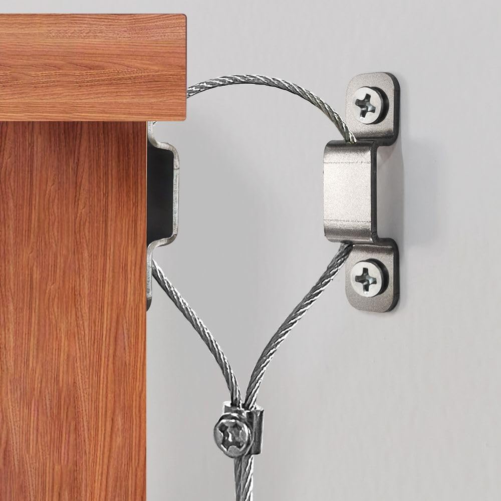 - Unlike other products on the market who directly use fixed length steel wire keychains, our steel wire rope adopts an adjustable design, allowing your cabinet to be tightly fixed without tilting