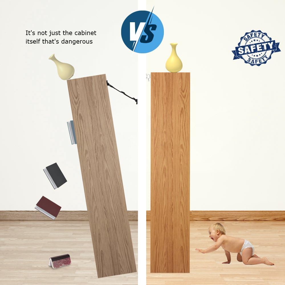 - Our package includes 10 pack furniture safety anchors that are adjustable and come with all the necessary hardware for installation. They are perfect for all cabinets, dressing tables, drawers, shelves, bookshelves, bookcases and other furniture against the wall