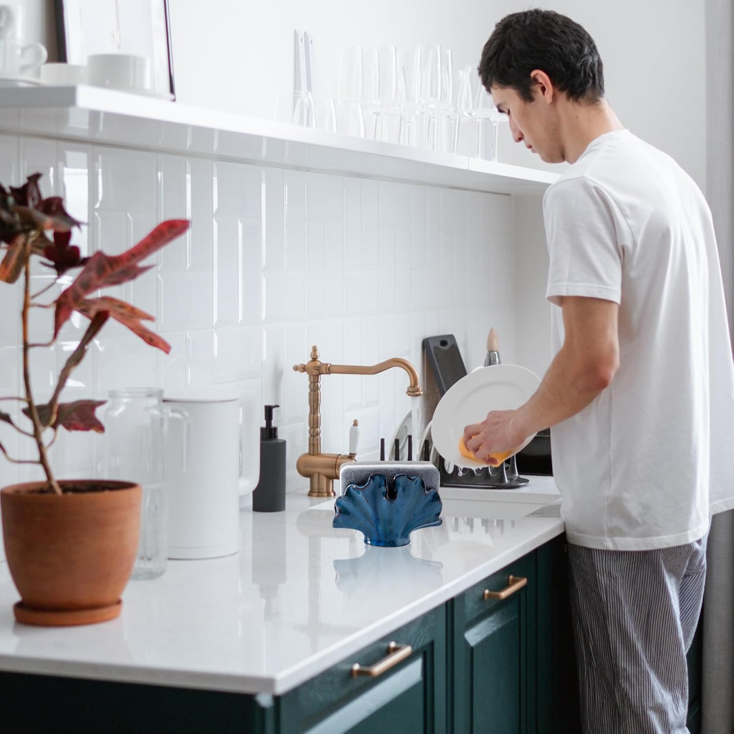 - Sturdy Construction: Crafted from premium ceramic, this sink sponge holder is designed to endure everyday usage.The durable material ensures it remains sturdy and reliable over time, even in a wet environment.