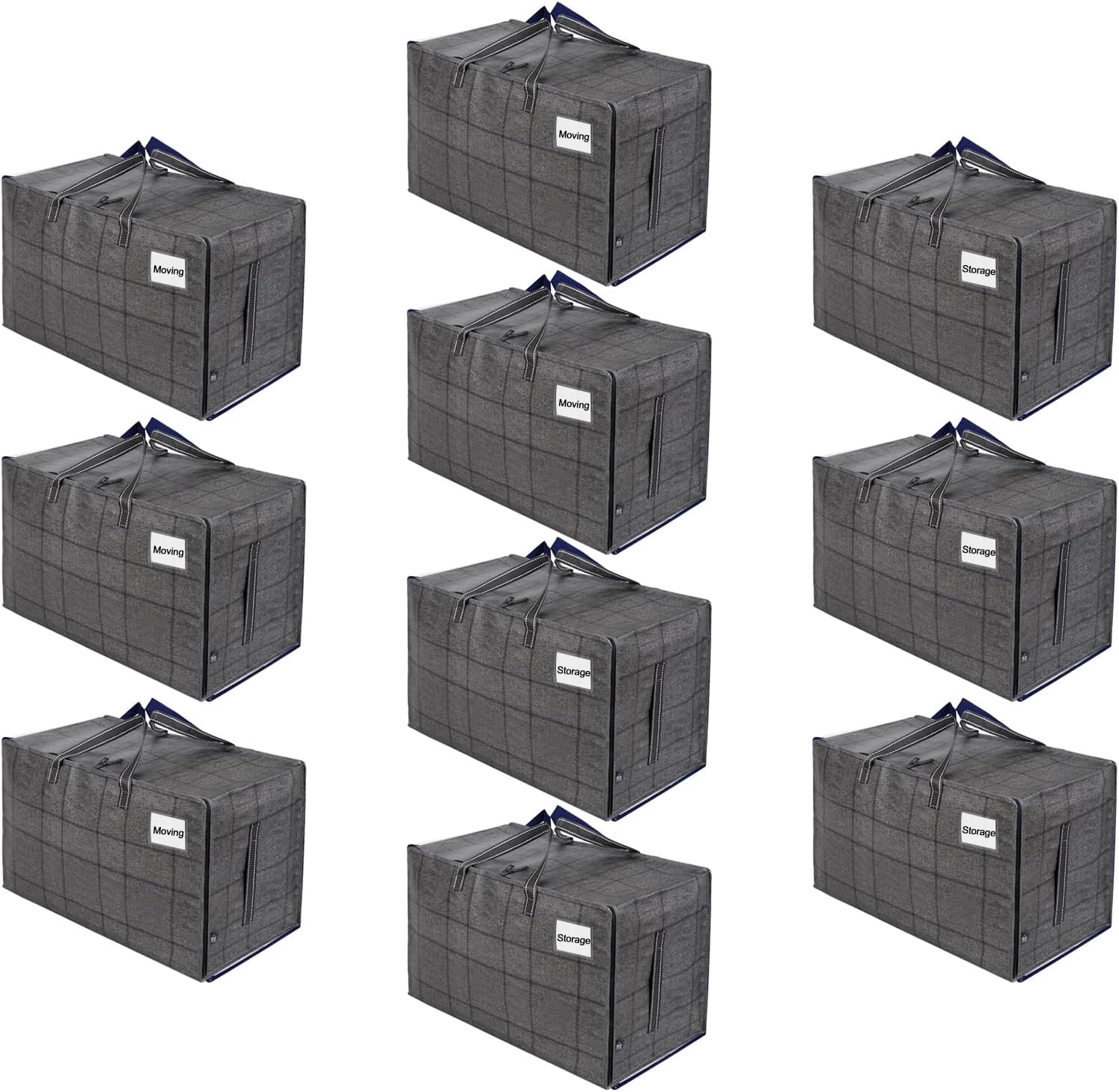 VENO 10 Pack Moving and Storage Bags, Heavy Duty, Alternative to Moving Boxes, Large Packing Totes Supplies for College Dorm Room with Zipper for Clothes, Wide Open Design (Windowpane, 10 Pack)