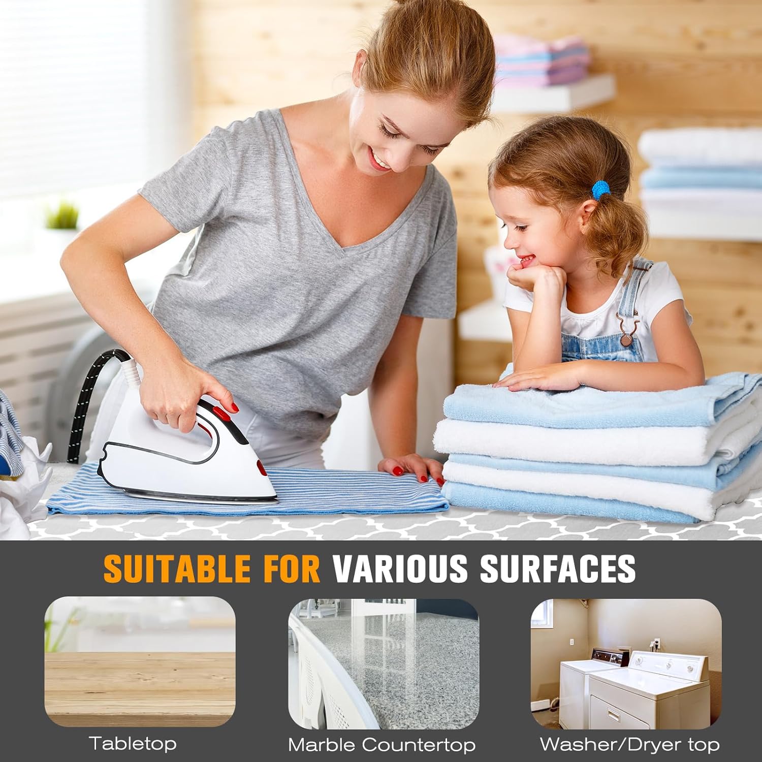 - 【DURABLE AND ANTI-SLIDE】Made of 4 layers thicken material with extra thick padding is scratch-proof, waterproof and heat-resistant. Protects table or bed from burning as well as allows steam to go through and also holds heat for quick ironing