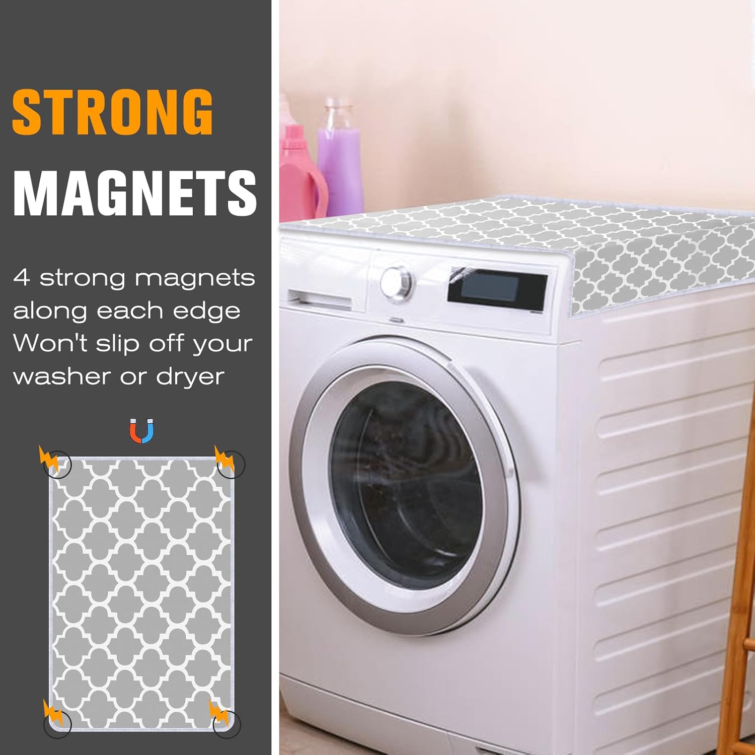 - 【STAYS IN PLACE】 This ironing pad is designed to stay in place; 4 heavy duty magnets embedded in the lining easily attach to washing machines and dryers; plus, The bottom of the PVC glue point to prevent sliding while ironing clothes