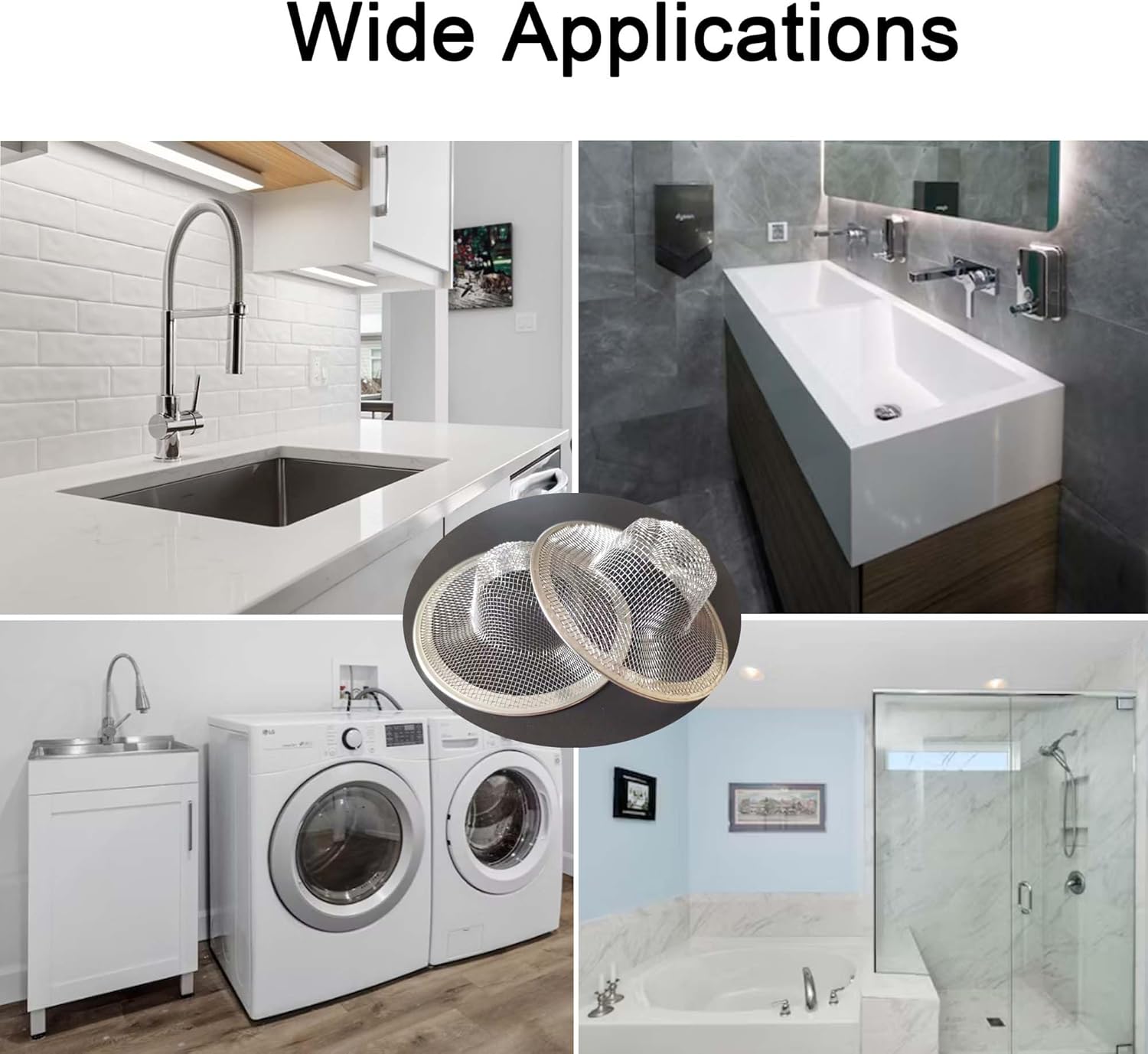 - Drain Mesh Strainer Wide Usage: Our sink mesh strainer, drain wig mesh sink strainer, filter screen for bathtub, can catch hair, food bits, debris and this sink screen strainer allows long-lasting protection against drainage clogging, perfect for kitchen sink, bathtubs, balcony, floor drain, bathroom sinks, wash basin, shower drains, laundry, lavatory sink, washroom, washroom sewer. We think you're going to love this drain screen, bathroom sink strainer basket, mesh sink drain strainer.