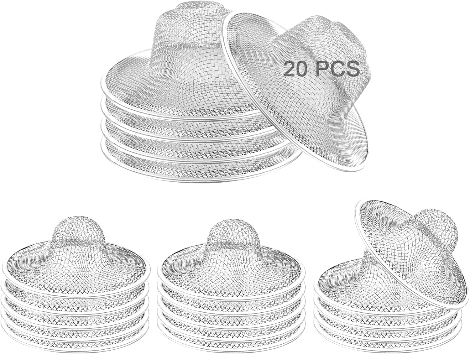 - Set of 20 Drain Strainers: Stainless steel slop basket filter trap, bathroom sink metal strainer, kitchen sink drain screen mesh, you will receive 15 pcs metal mesh sink strainers, bathroom sink screen, whose diameter is 2.75''(outside dia 2.75", high 1'', inside dia 1.2"). Plus, you can also get 5 pcs stainless steel kitchen sink strainers mesh, which measure at 4.41'' in total diameter (inside dia 2.3''). The sink screen is made to fit most standard kitchen sink sizes of 3.5'' in the US.