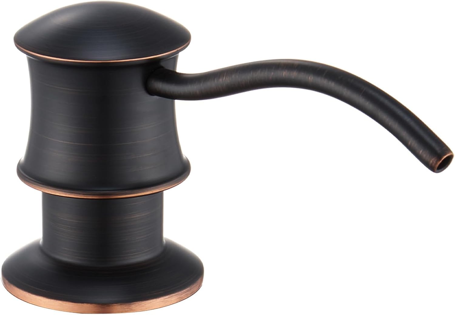 Built in Soap Dispenser for Kitchen Sink Countertop, Solid Brass Pump Head Long Spout with 10.2 Ounce PET Food Safe Material Lotion Bottle, Oil Rubber Bronze Finish