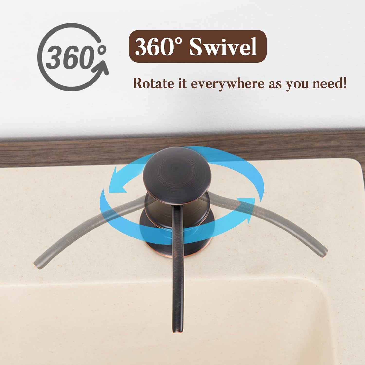 - 【50,000 TIMES PRESS & NO LEAKEAGE LONG SPOUT】Brass pump with high-strength spring ensures beyond 50,000 times press use. A good running head also solves the problem of liquid leakage and makes your kitchen work more worry-free. Roman arch spout line design provide you a hands-on daily use and spark your kitchen sink